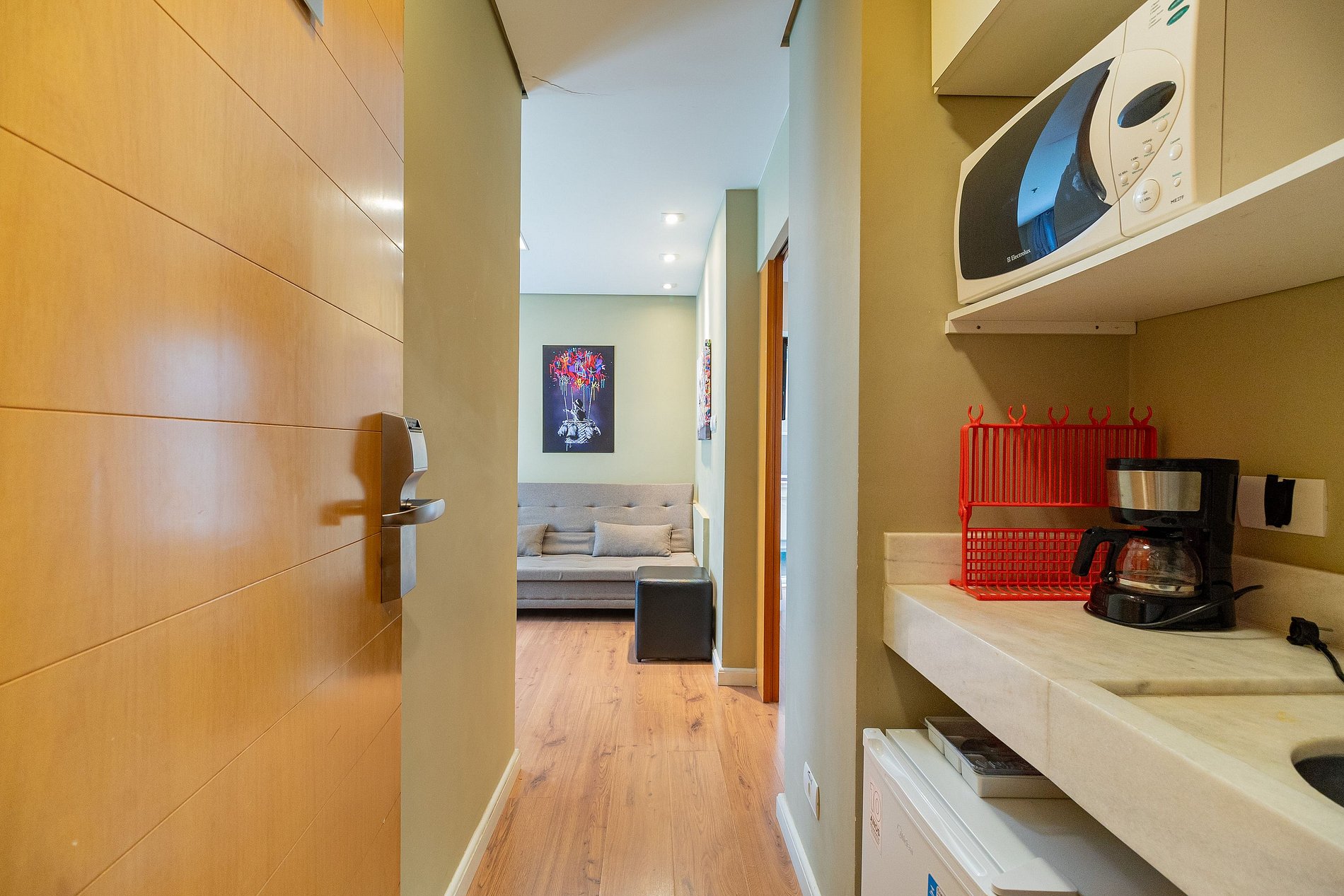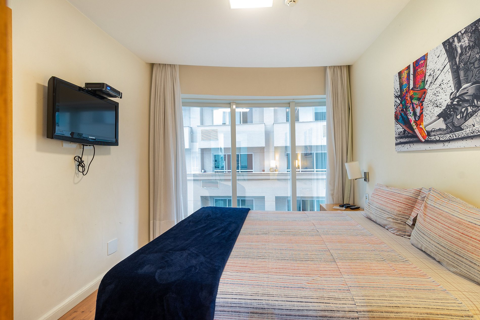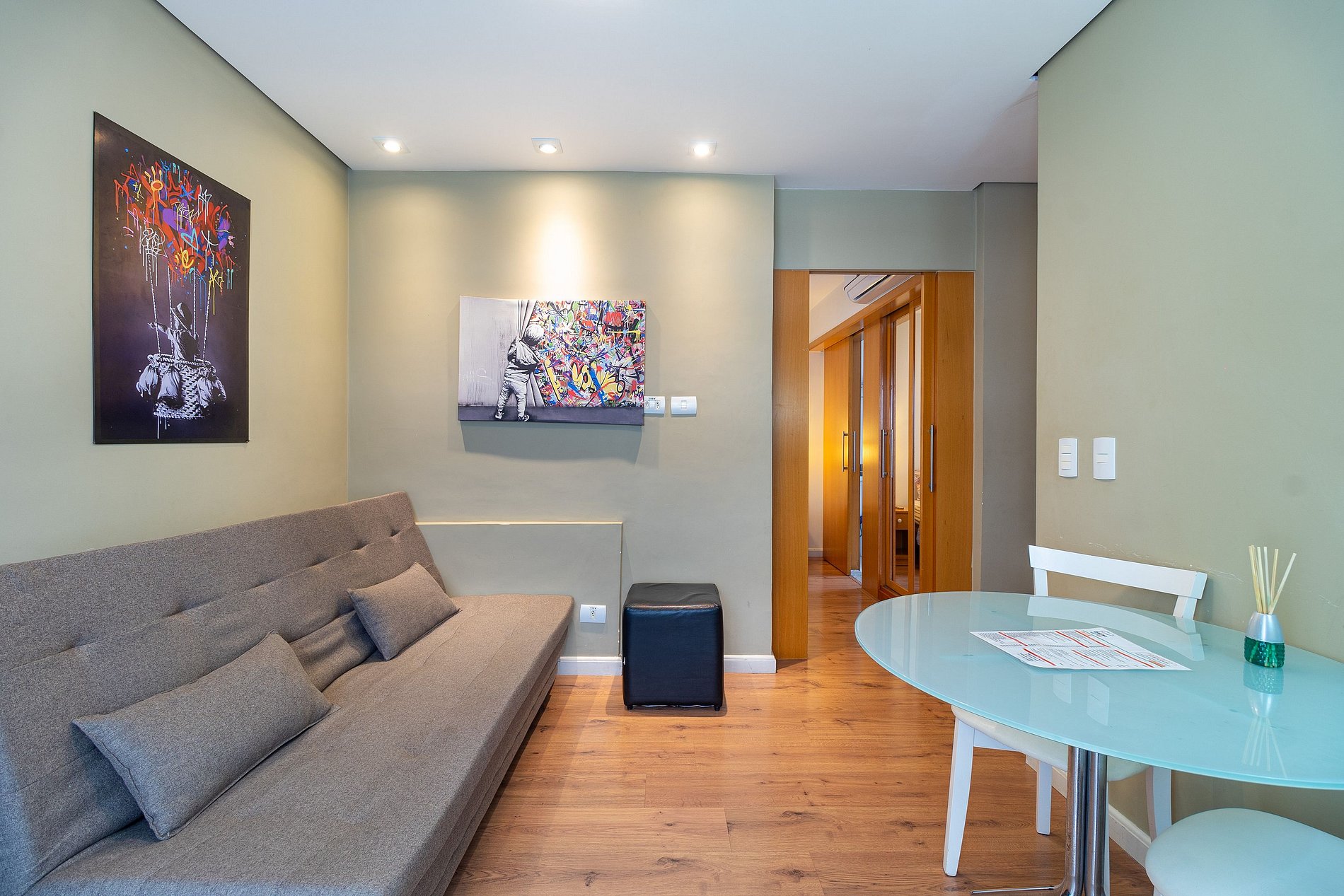 -Flat possui uma suíte com cama de casal, um sofá cama , ideal para acomodar até quatro hóspedes.
