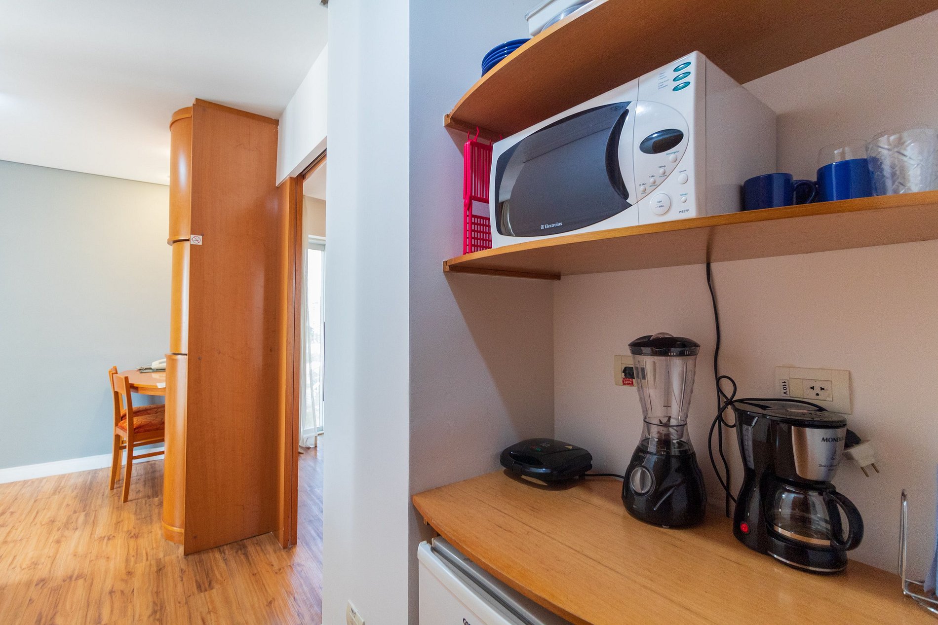 Cozinha kitnet (frigobar, microondas , cafeteira, sanduicheira e liquidificador)