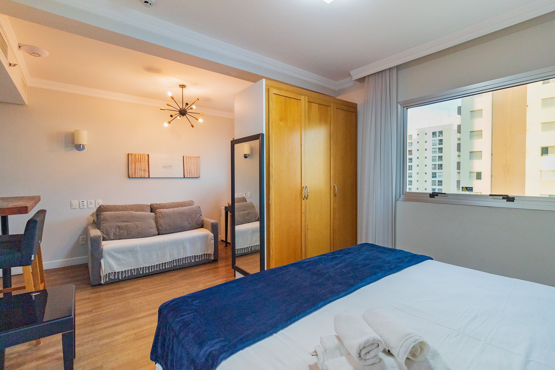 Terão acesso ao flat e a todas as áreas comuns do prédio como: sauna seca, academia.