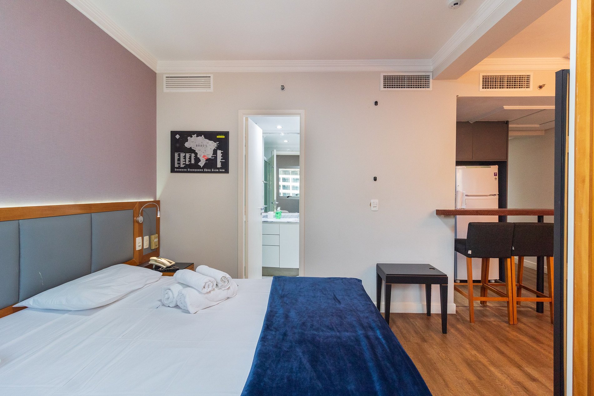 -Flat possui uma suíte com duas camas de solteiro King , um sofá cama , ideal para acomodar até quatro hóspedes.