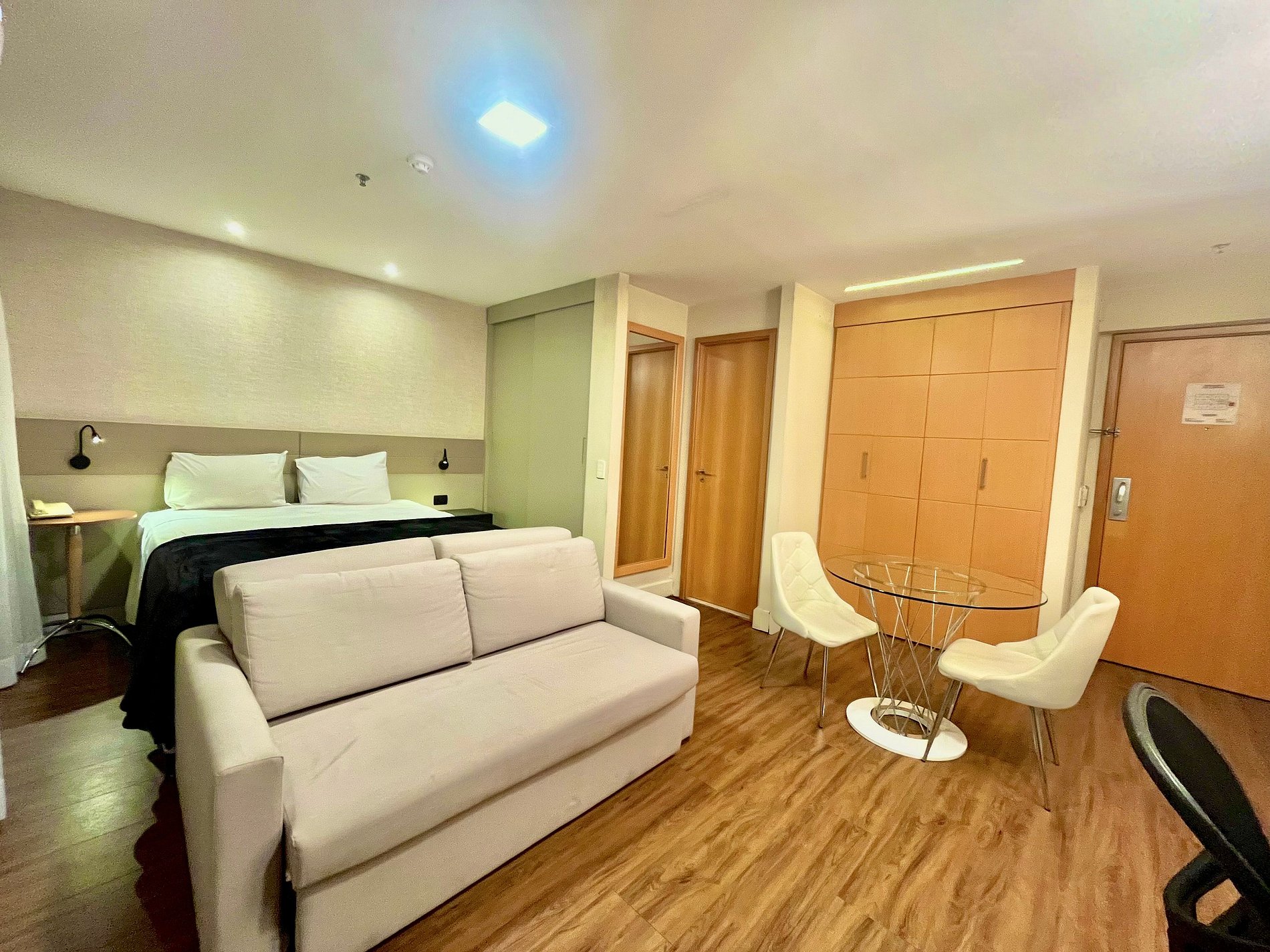 Flat com cama Queen, sofá cama de Casal