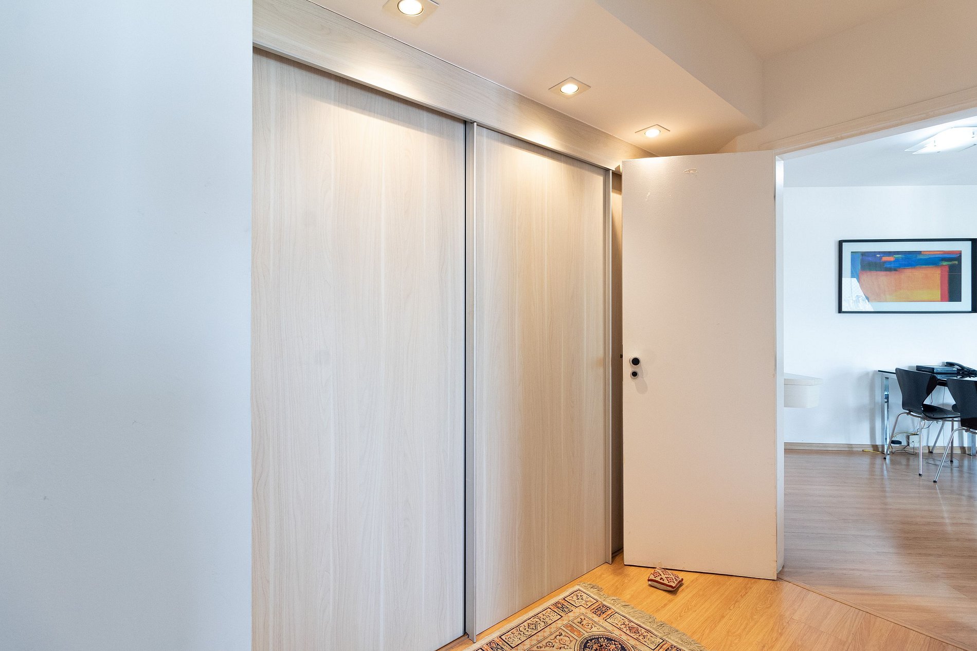 -Flat possui uma suíte com cama de casal, um sofá cama e dois colchões para colocar no chão, ideal para acomodar até cinco hóspedes.
