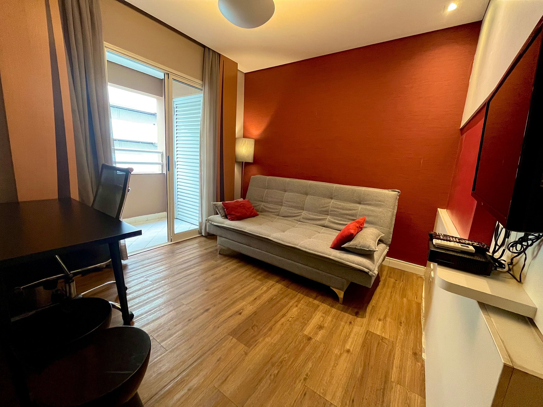 -Flat possui uma suíte com cama de casal, um sofá cama , ideal para acomodar até quatro hóspedes.