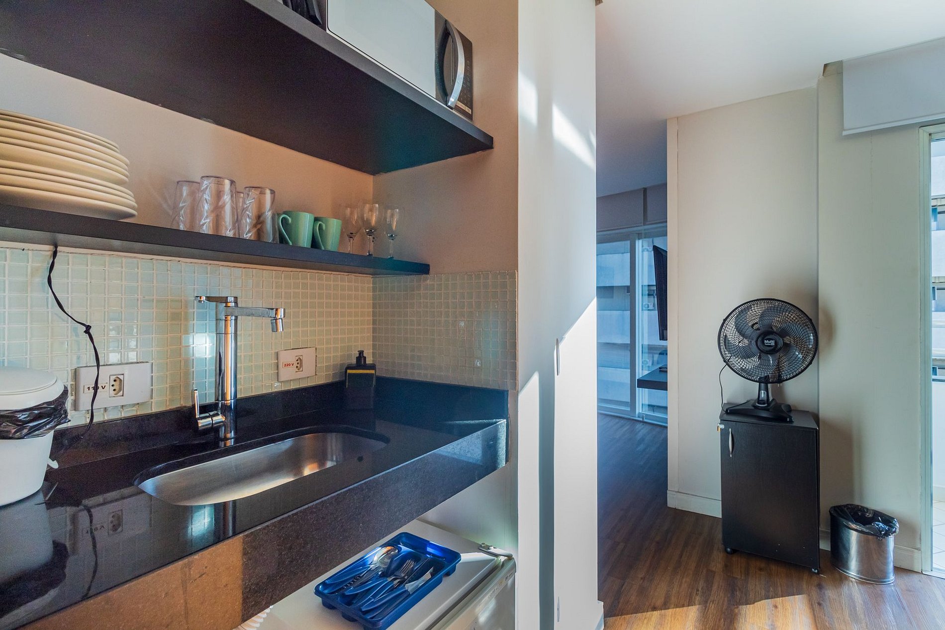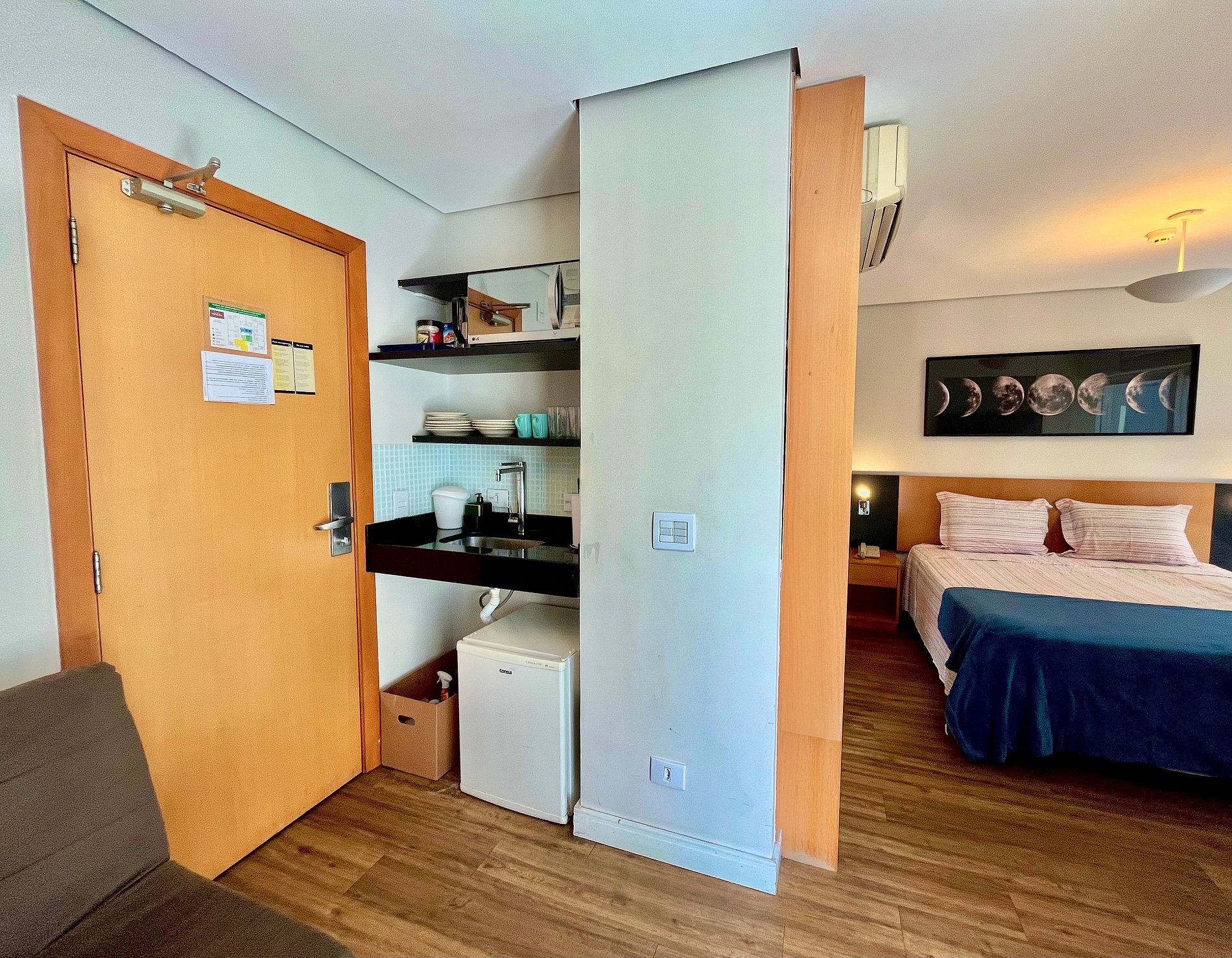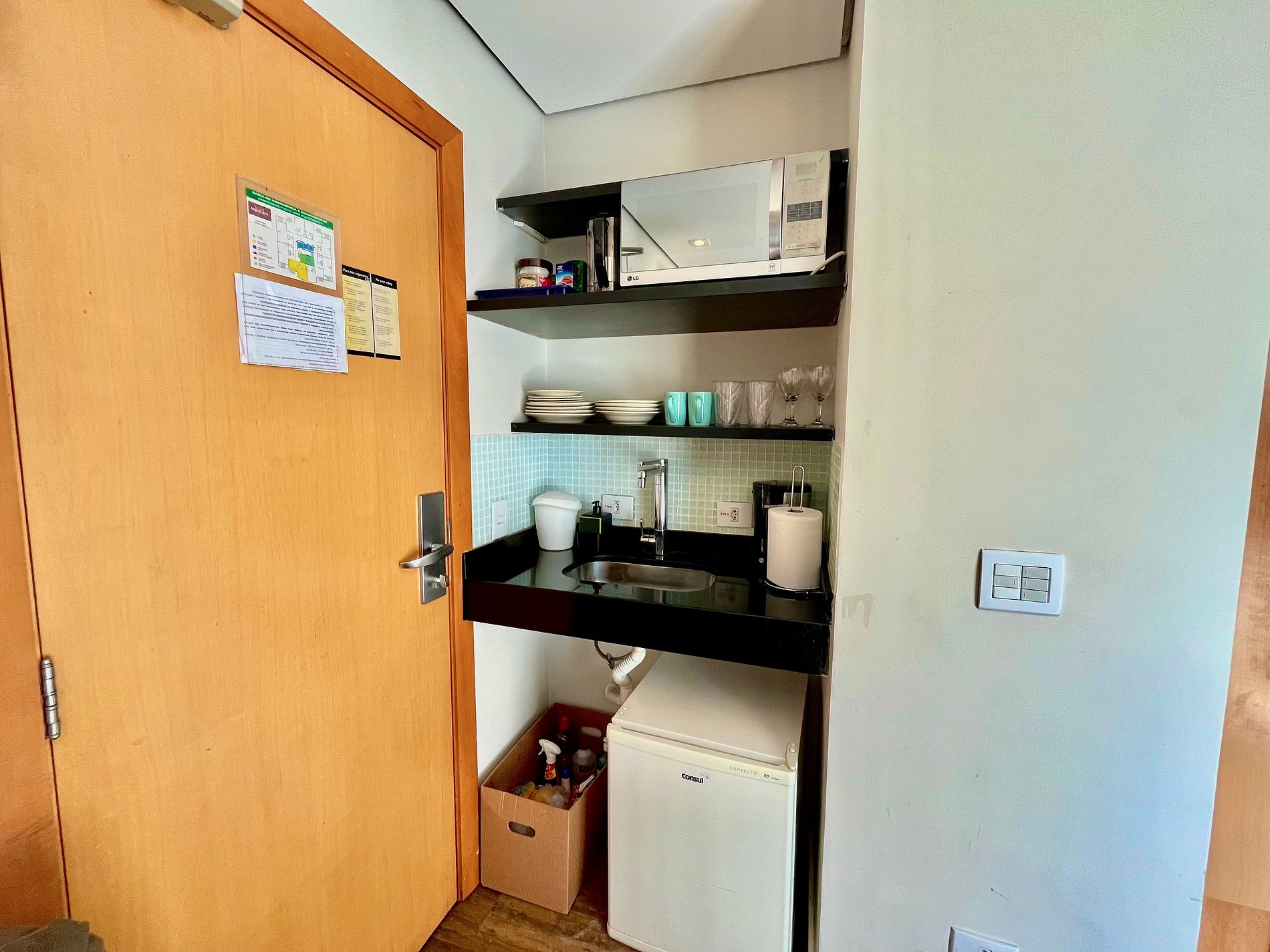 Cozinha kitnet (frigobar, microondas , cafeteira, sanduicheira e liquidificador)