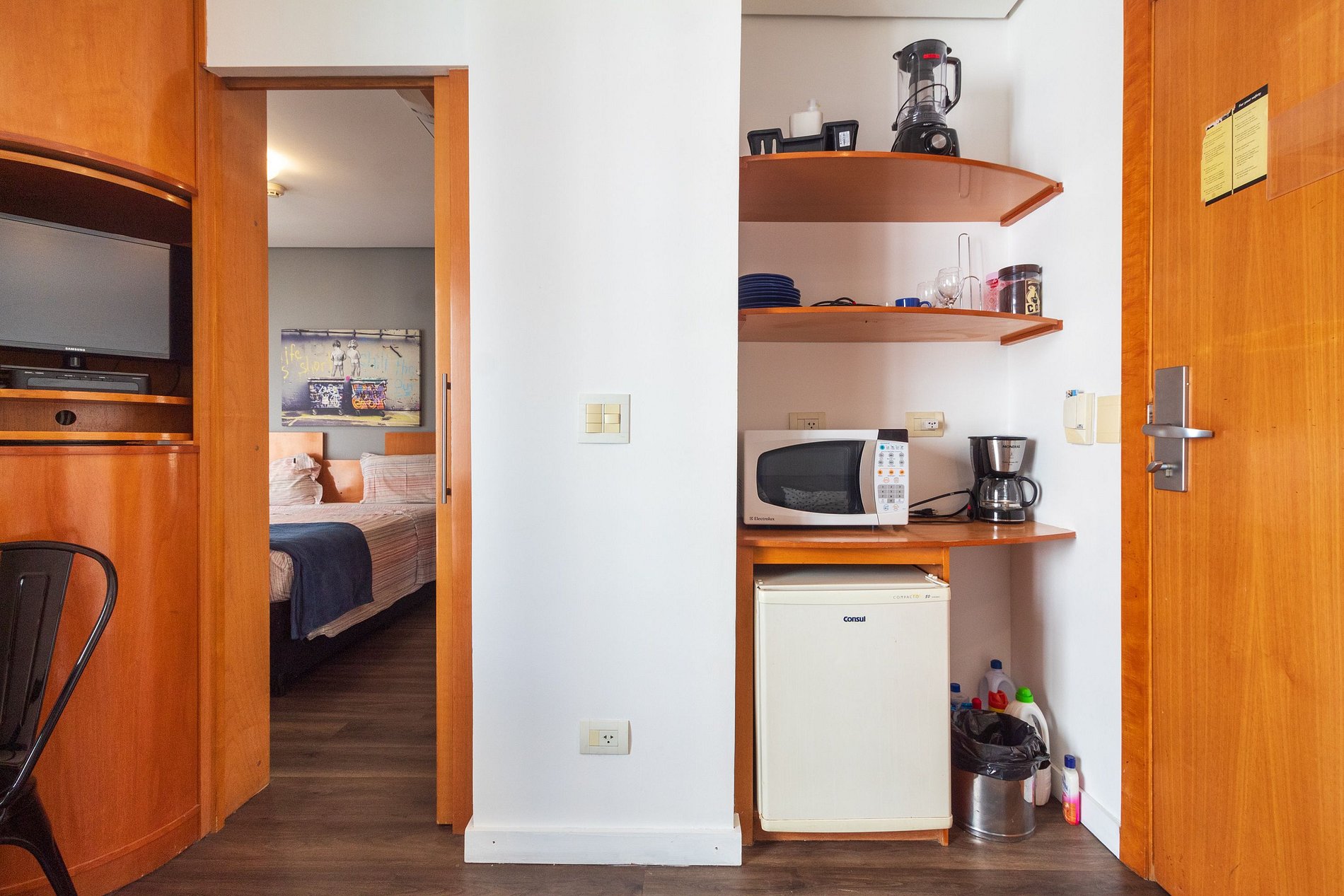 Cozinha kitnet (frigobar, microondas , cafeteira, sanduicheira e liquidificador)