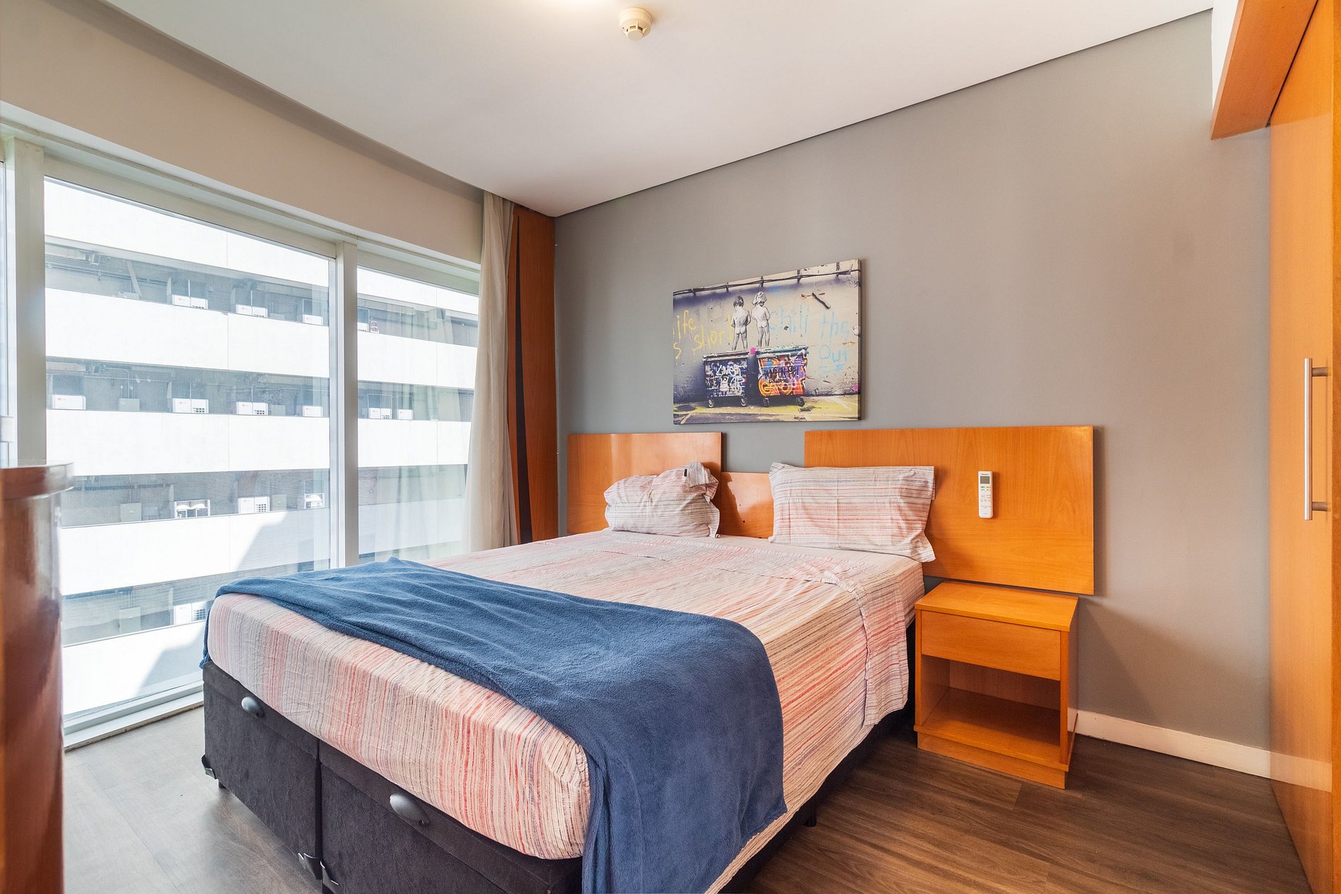 -Flat possui uma suíte com cama de casal, um sofá cama e dois colchões para colocar no chão, ideal para acomodar até cinco hóspedes.