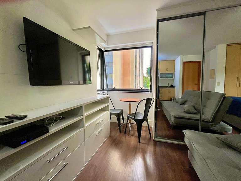 Flat com ótima estrutura e conforto, em condomínio moderno, de fácil acesso a qualquer ponto: transportes públicos, Aeroportos, shopping, farmácia, mercados e Parques.