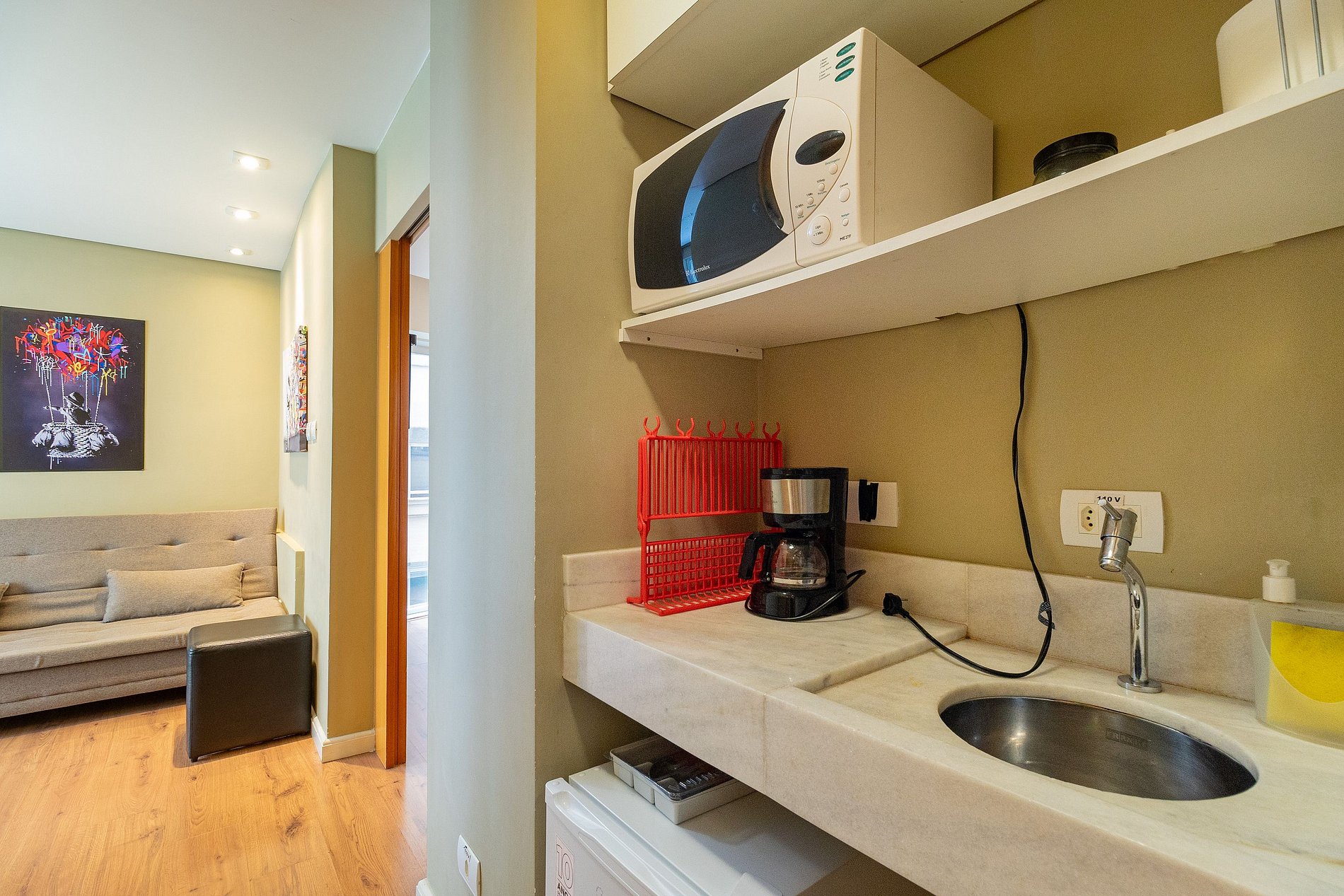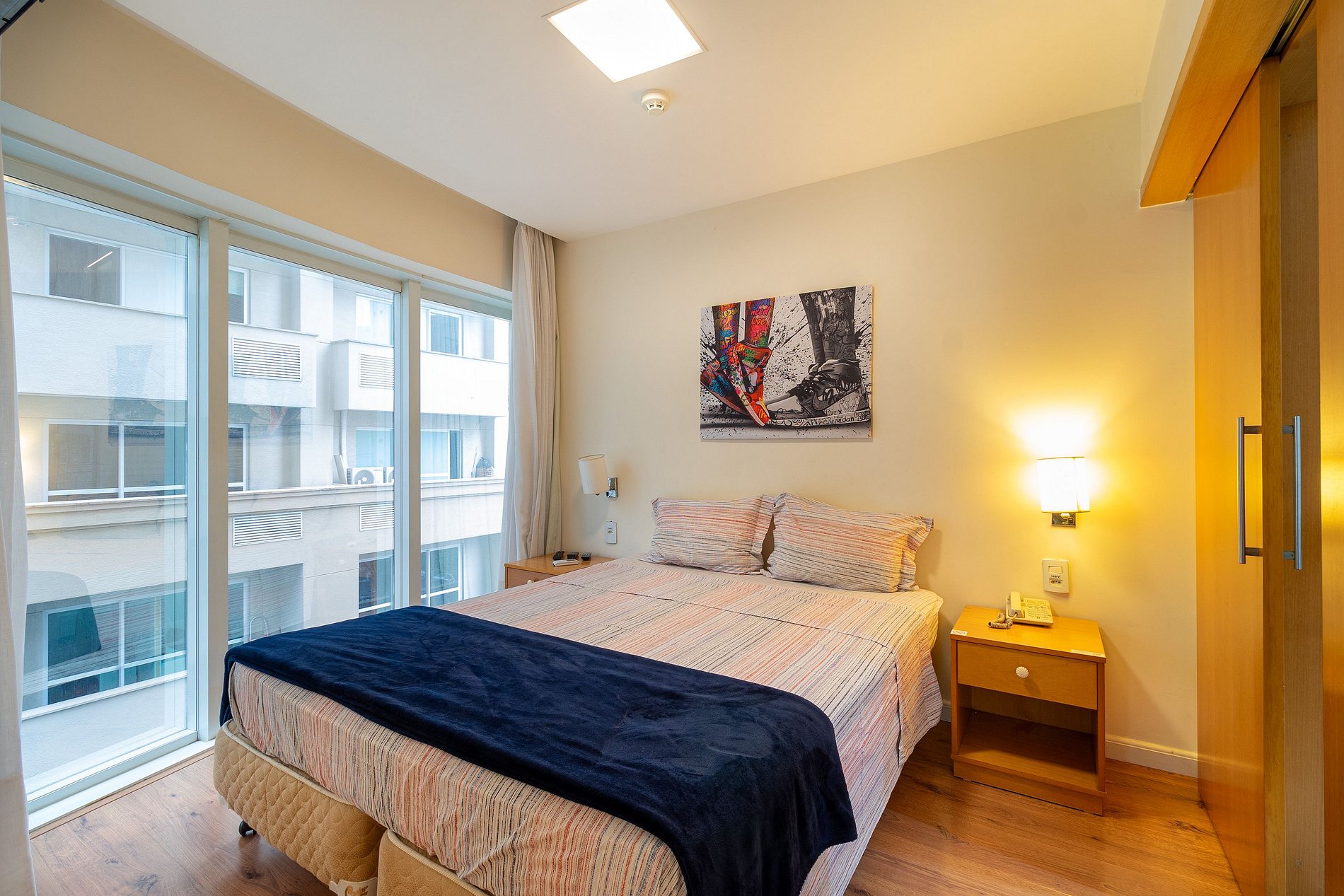 -Flat possui uma suíte com cama de casal, um sofá cama , ideal para acomodar até quatro hóspedes.