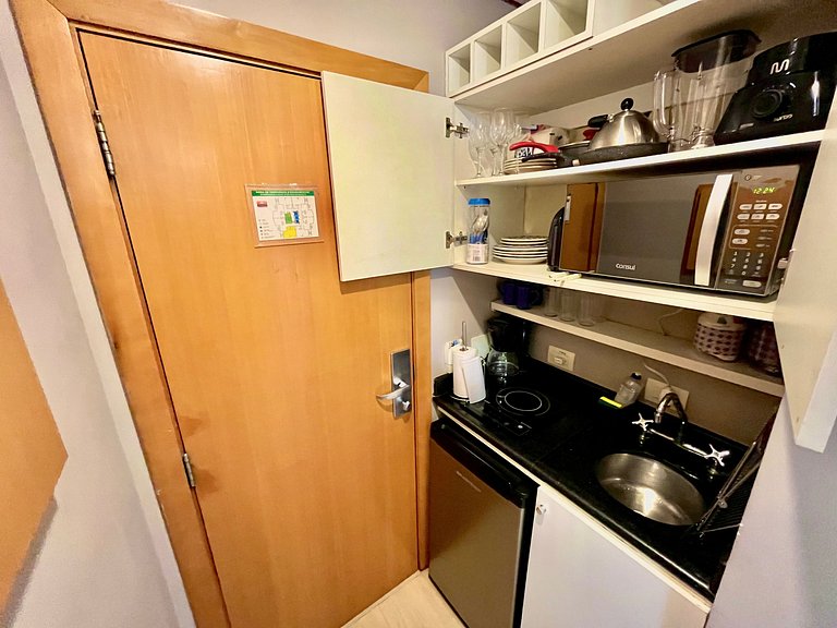 Cozinha kitnet (frigobar, microondas , cafeteira, sanduicheira e liquidificador)