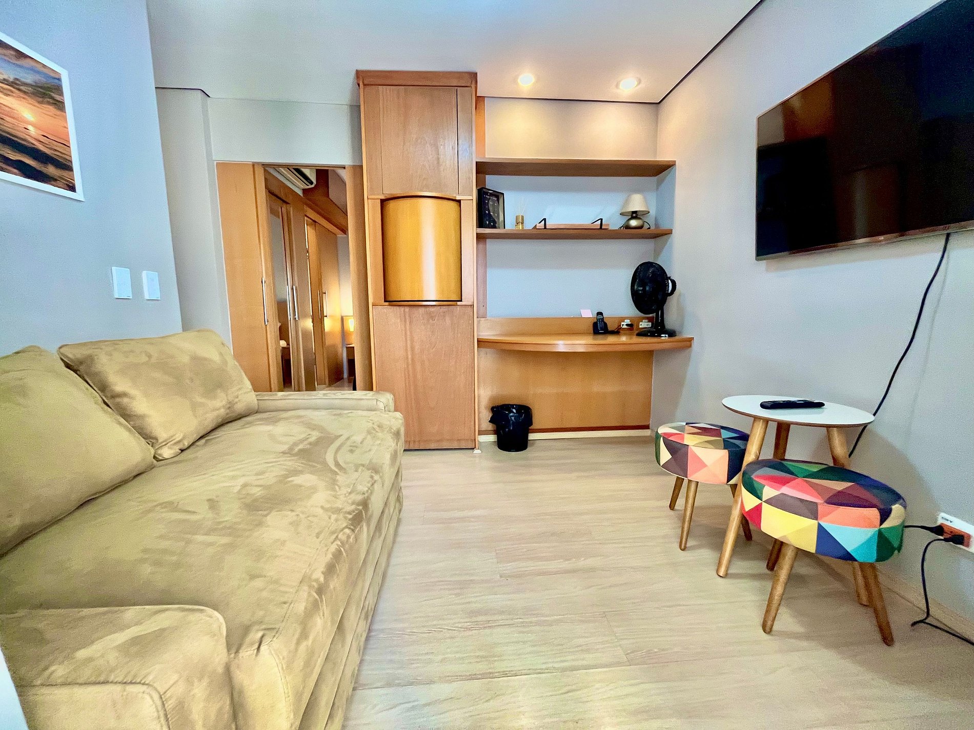 Flat com cama Queen, sofá cama de Casal.