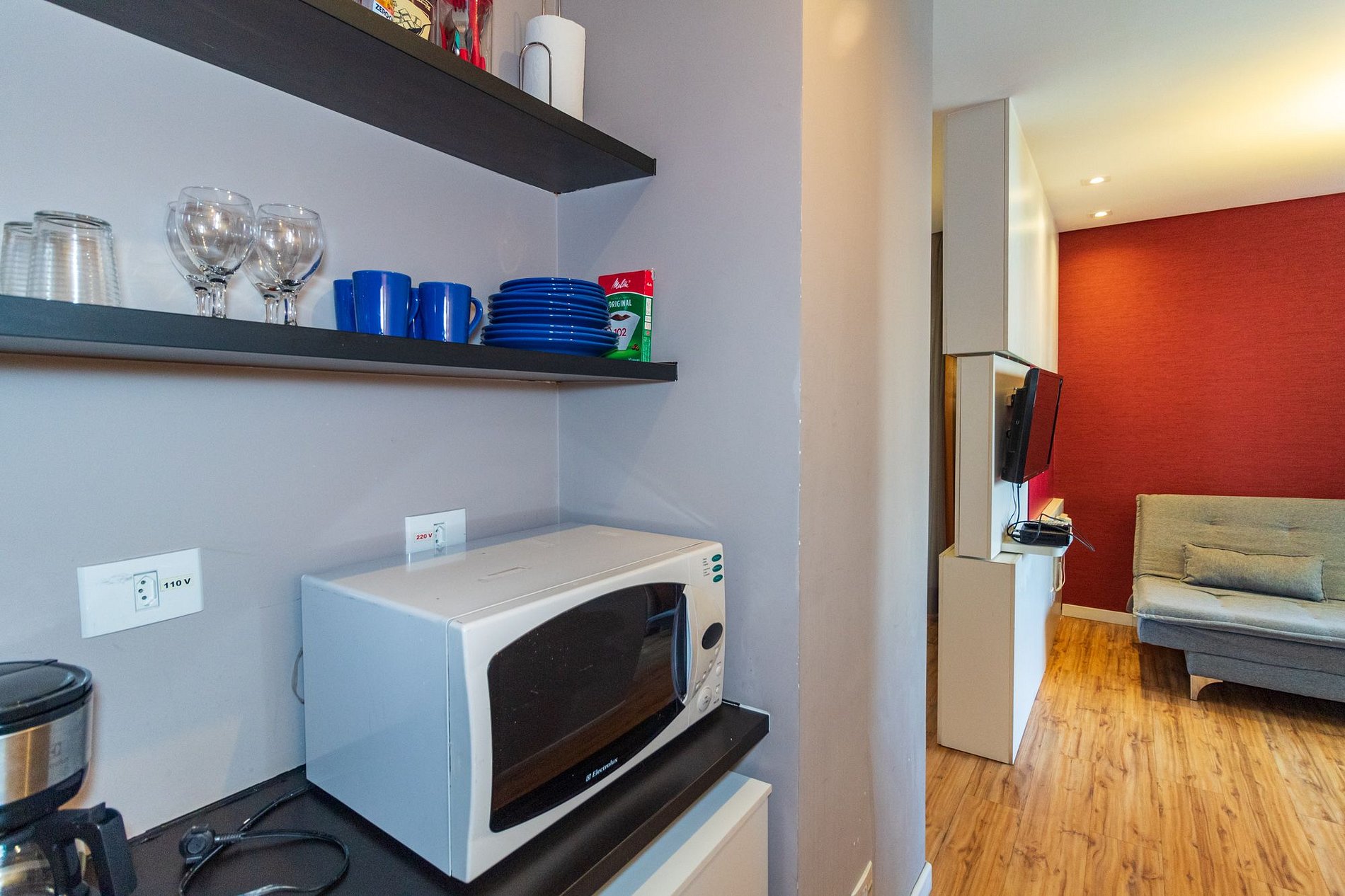 Cozinha kitnet (frigobar, microondas , cafeteira, sanduicheira e liquidificador)