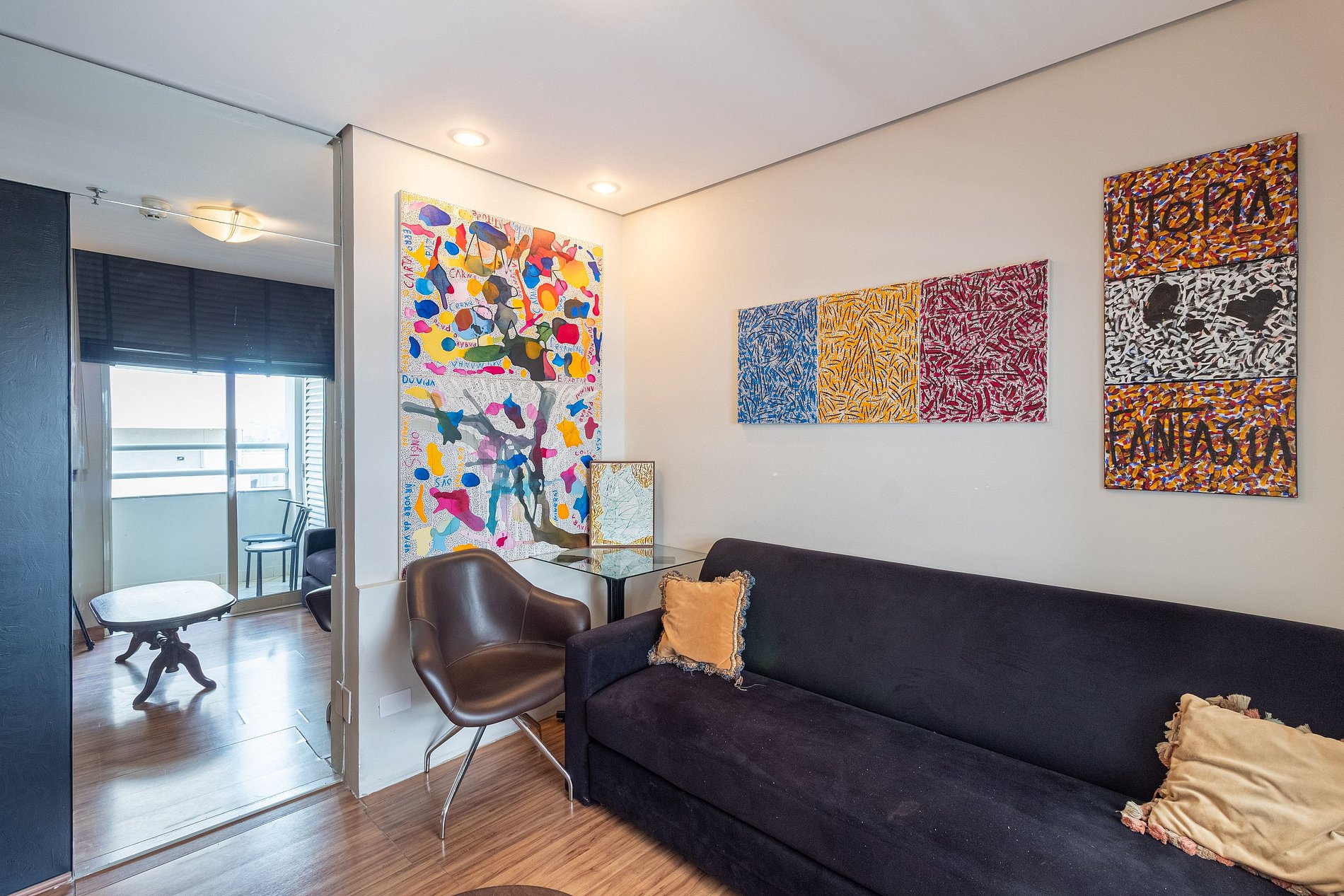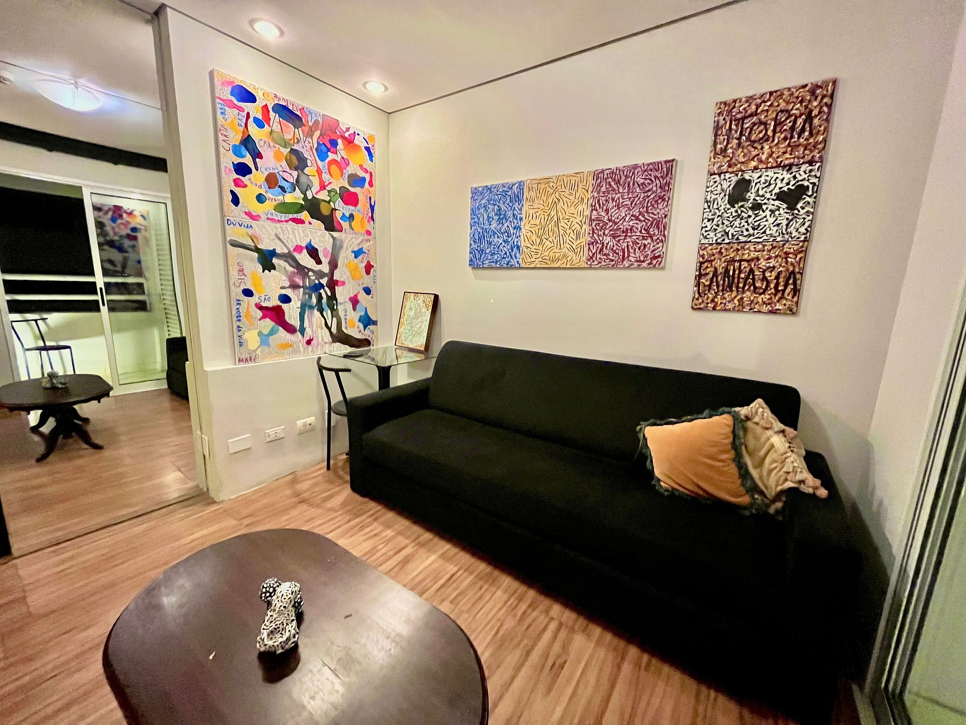 -Flat possui uma suíte com cama de casal, um sofá cama e dois colchões para colocar no chão, ideal para acomodar até cinco hóspedes.