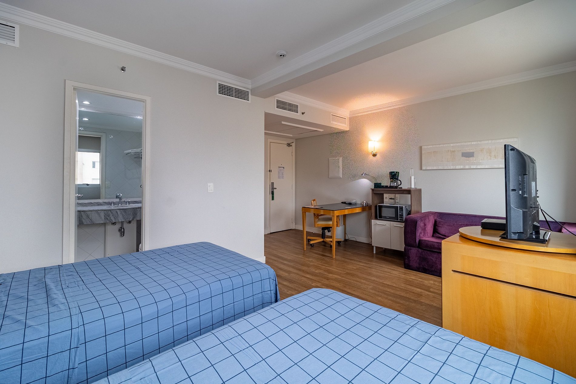 Flat com cama Queen, sofá cama de Casal