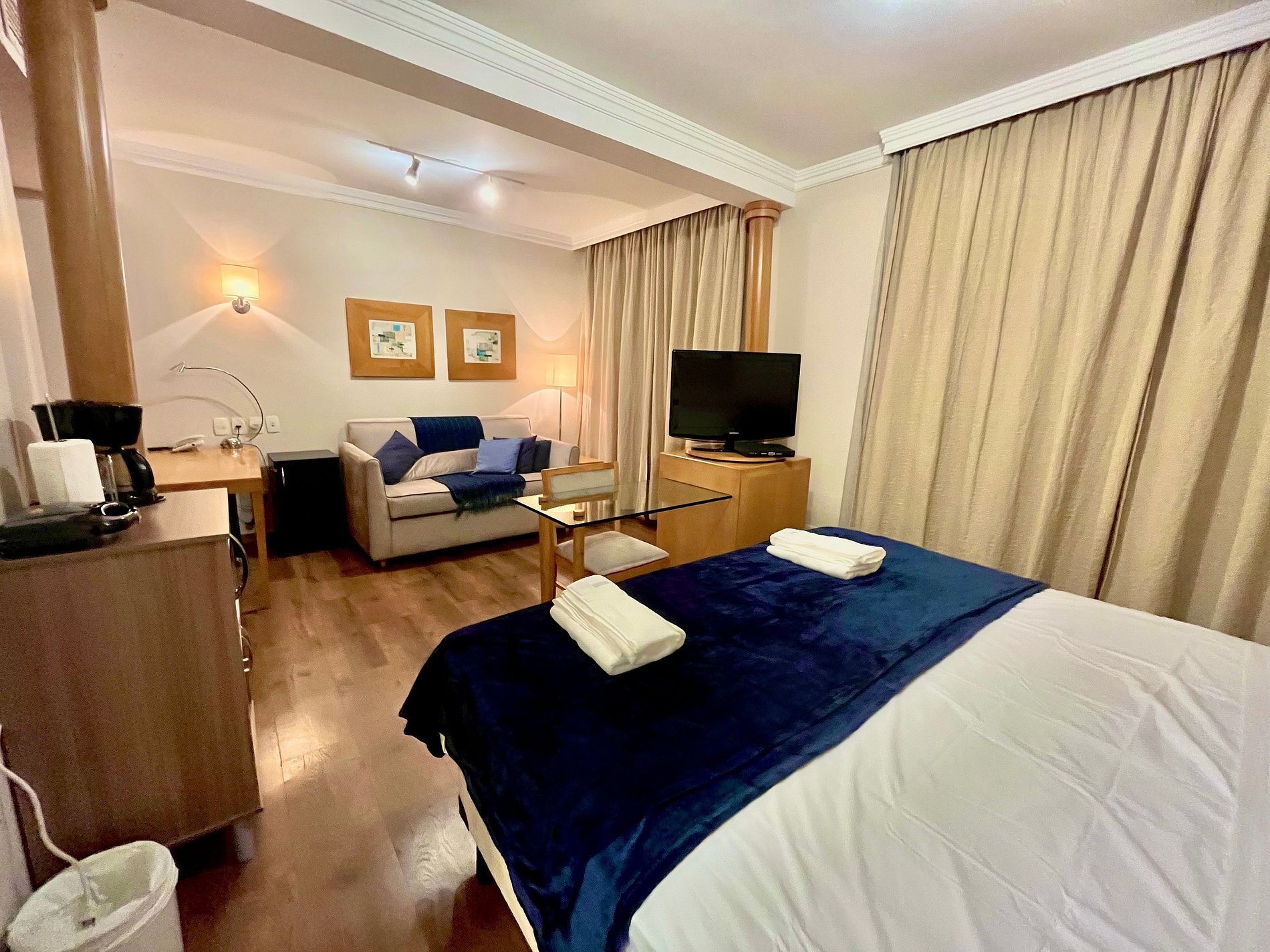 -Flat possui uma suíte com duas camas de solteiro King , um sofá cama , ideal para acomodar até quatro hóspedes.