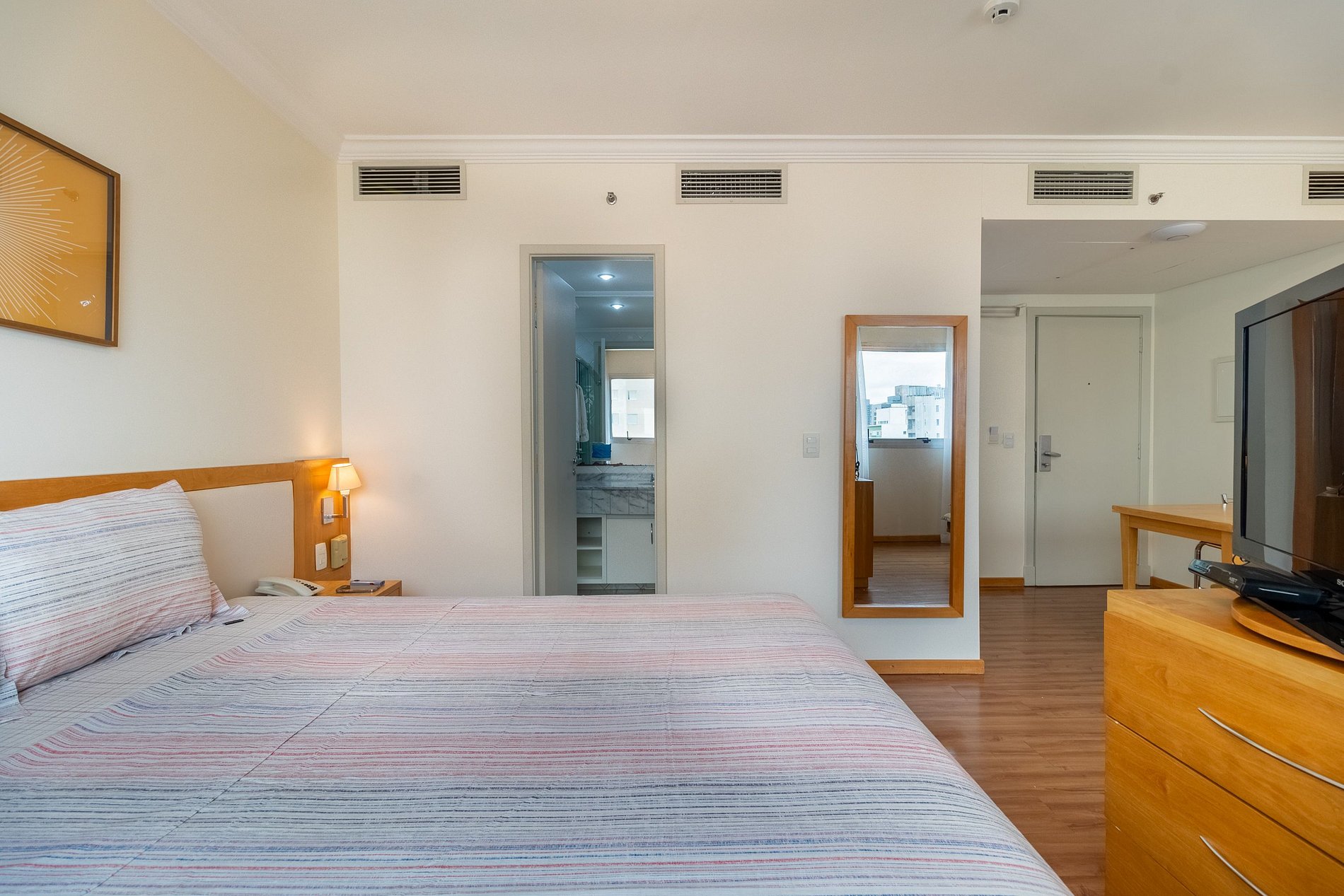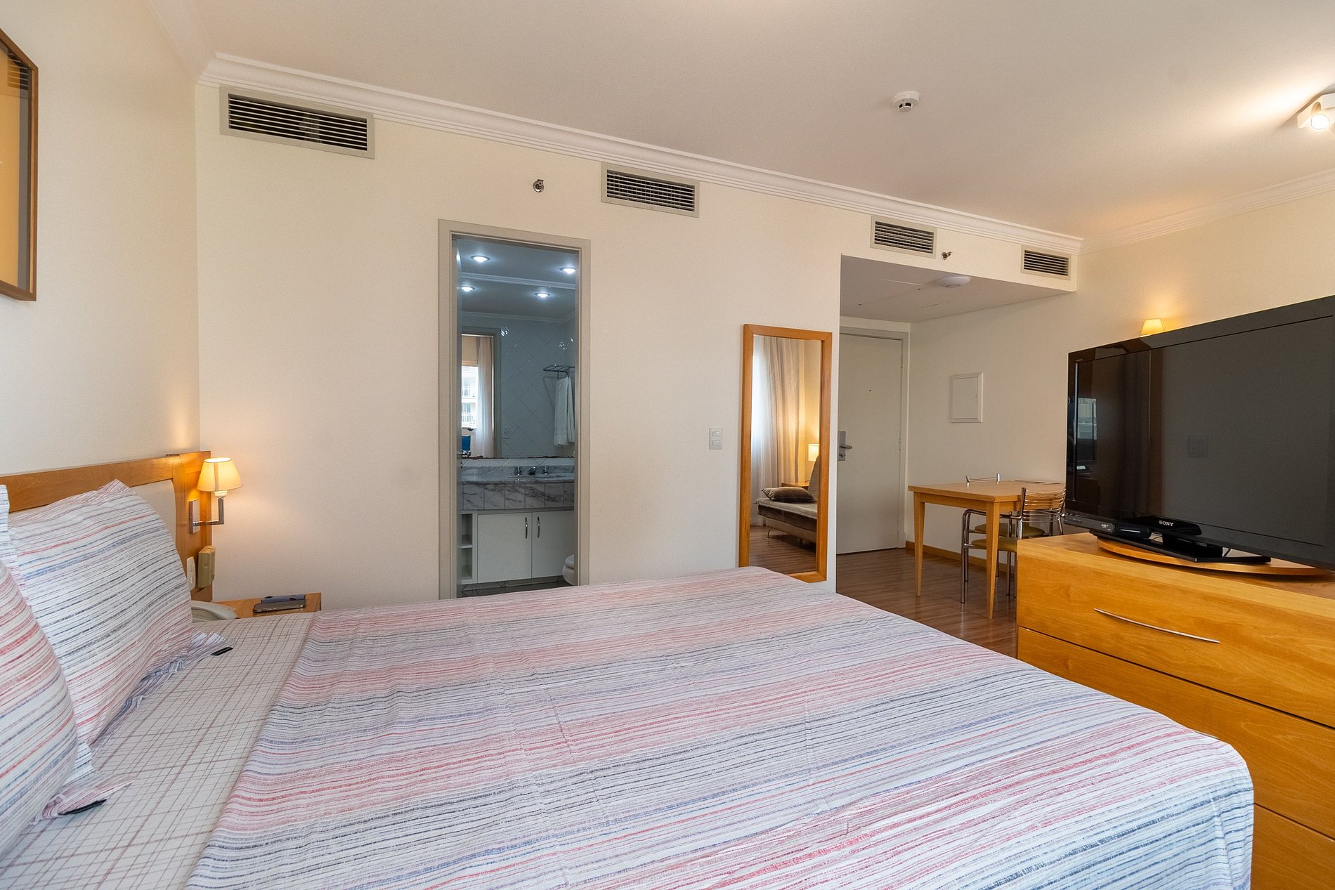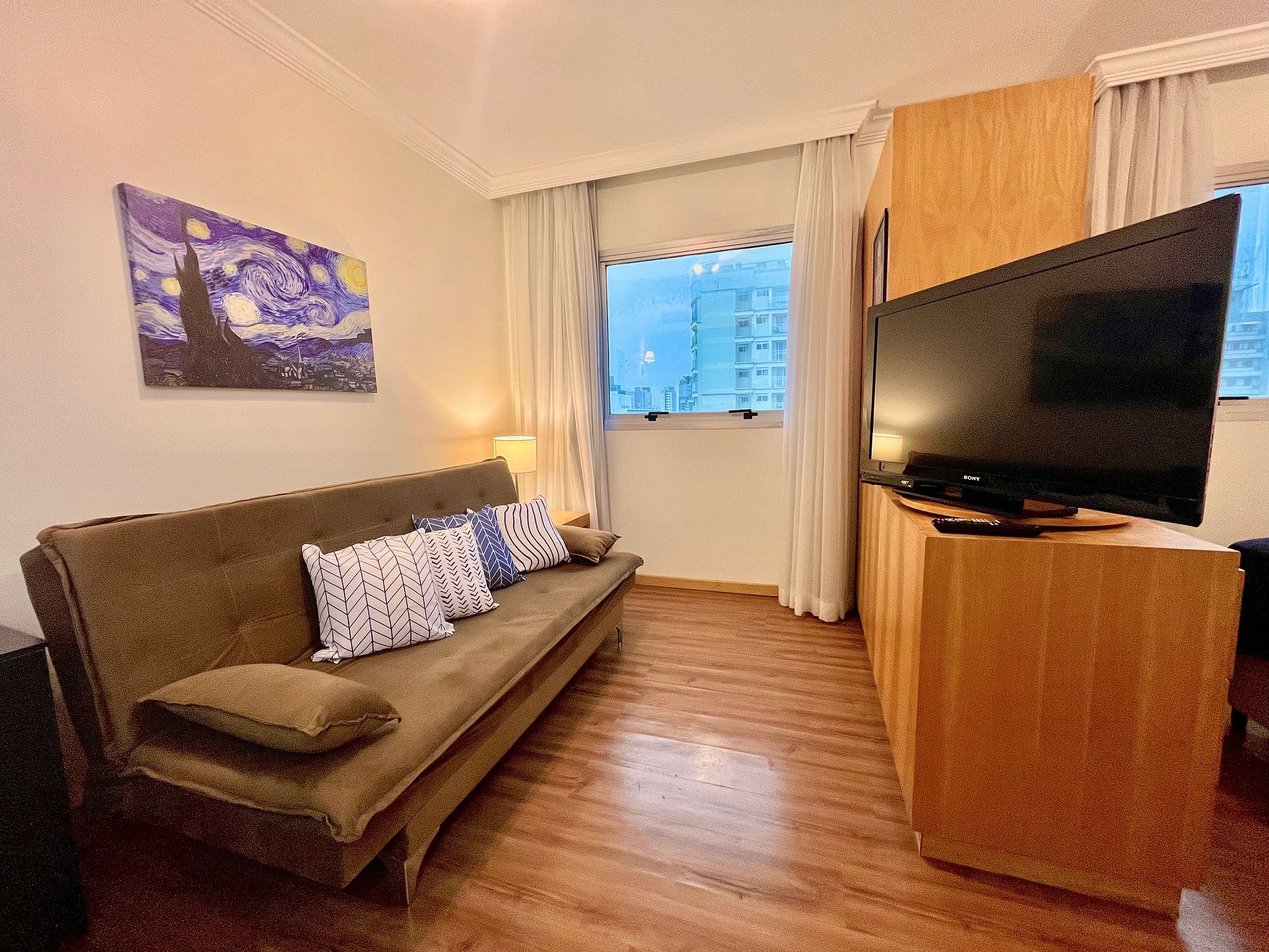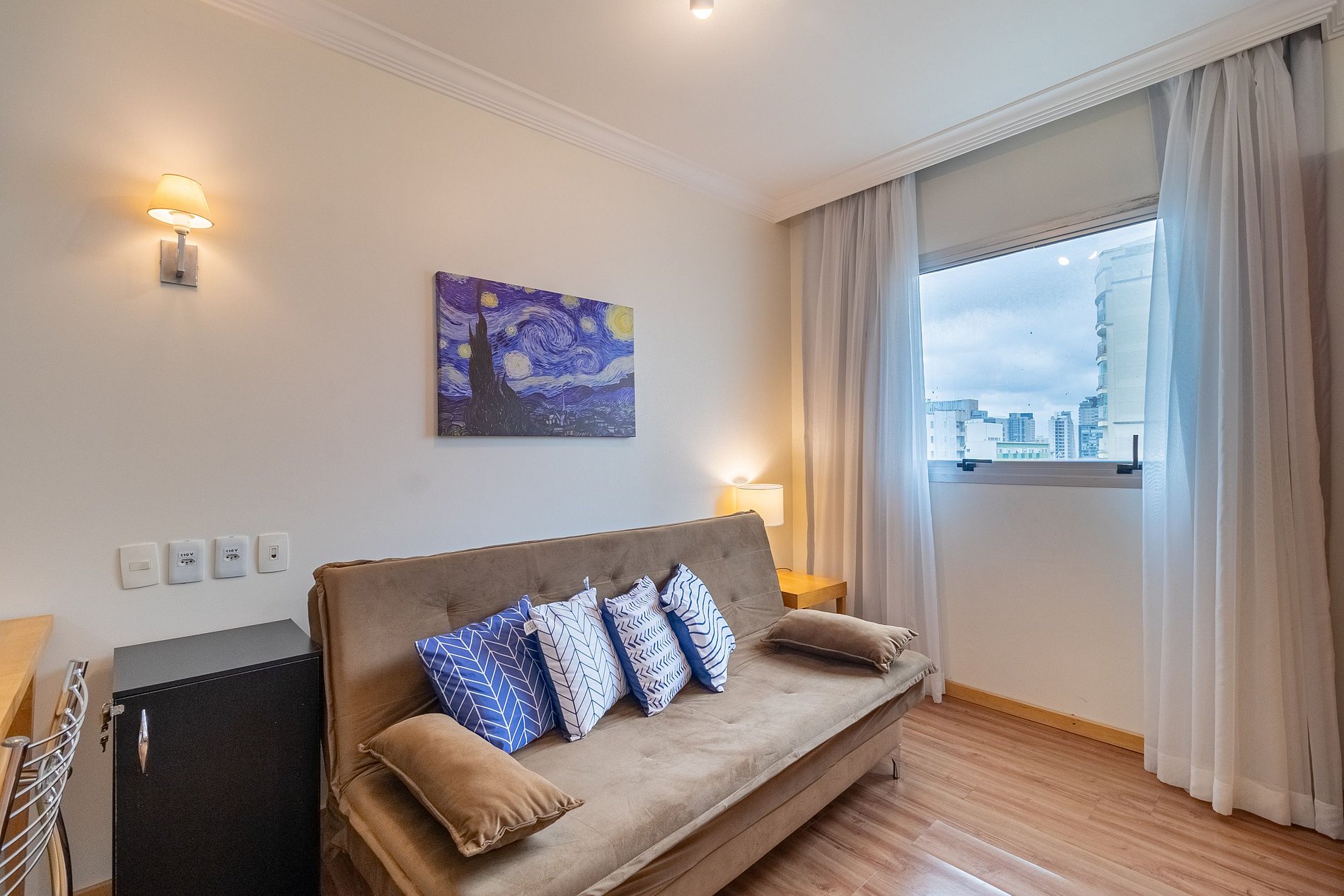 -Flat possui uma Cama Queen de casal , um sofá cama de casal , ideal para acomodar até quatro hóspedes.