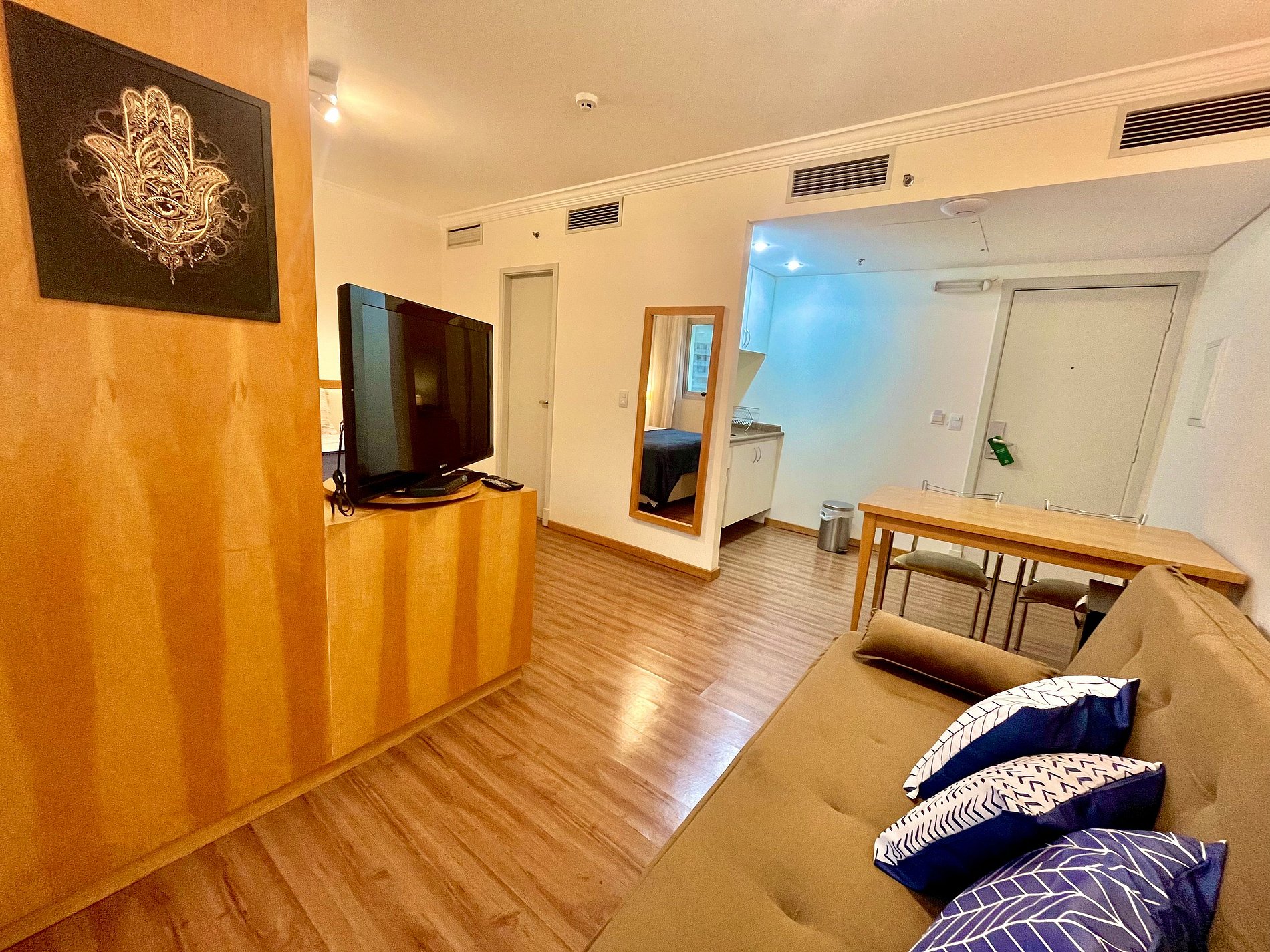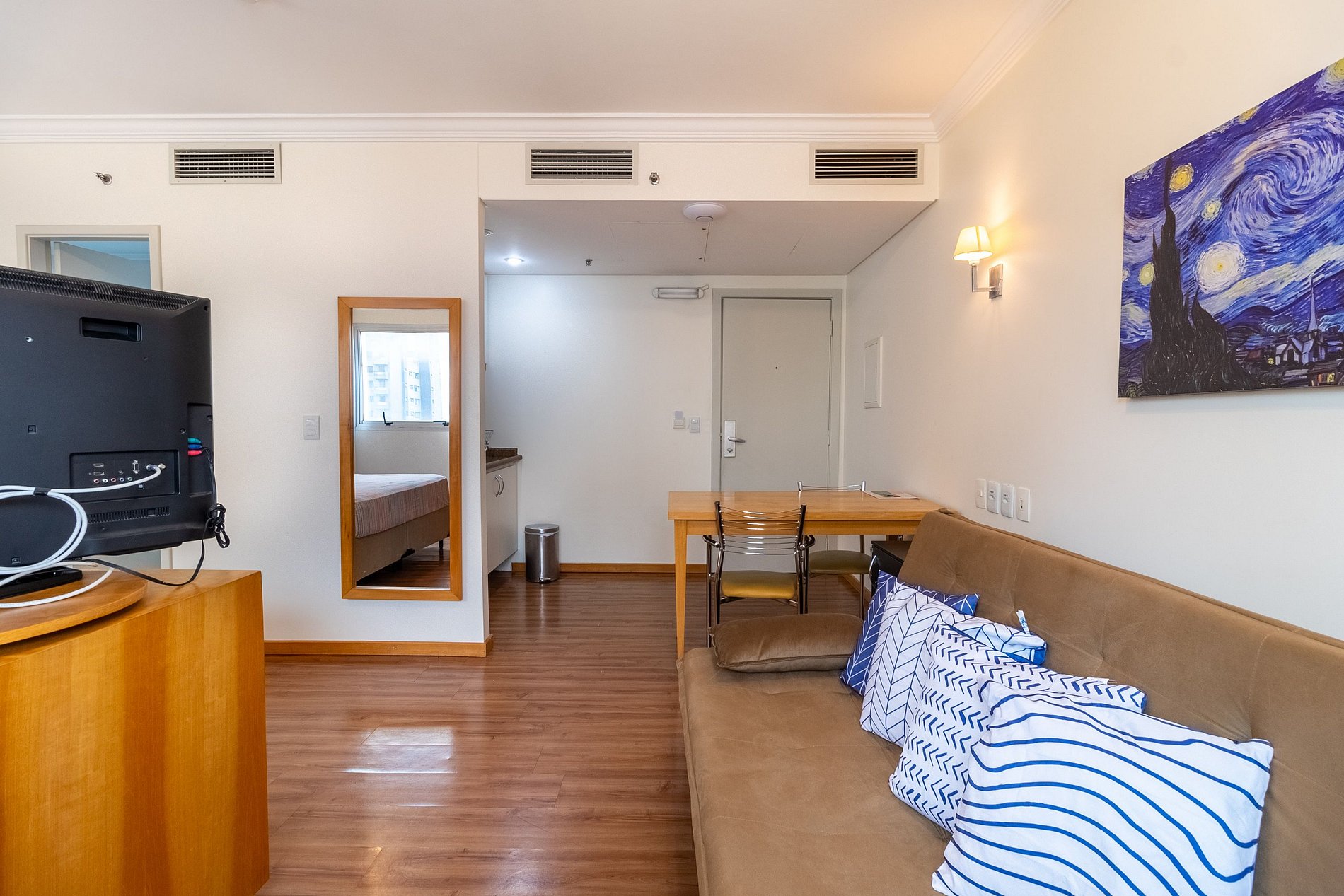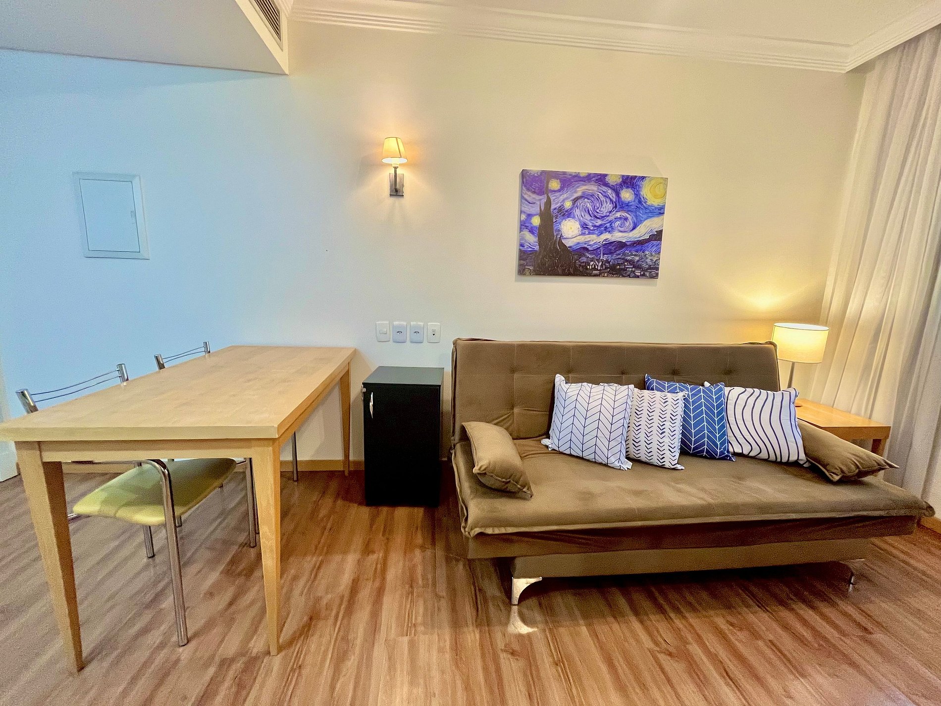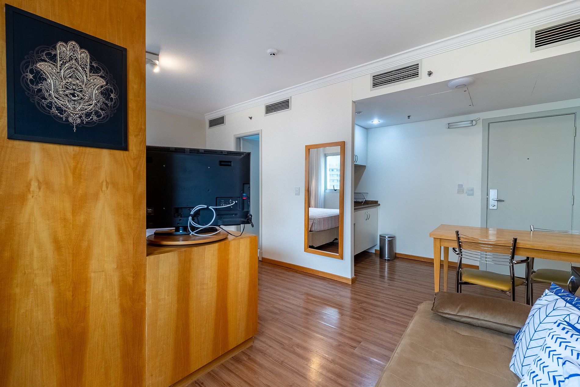 -Flat possui uma Cama Queen de casal , um sofá cama de casal , ideal para acomodar até quatro hóspedes.
