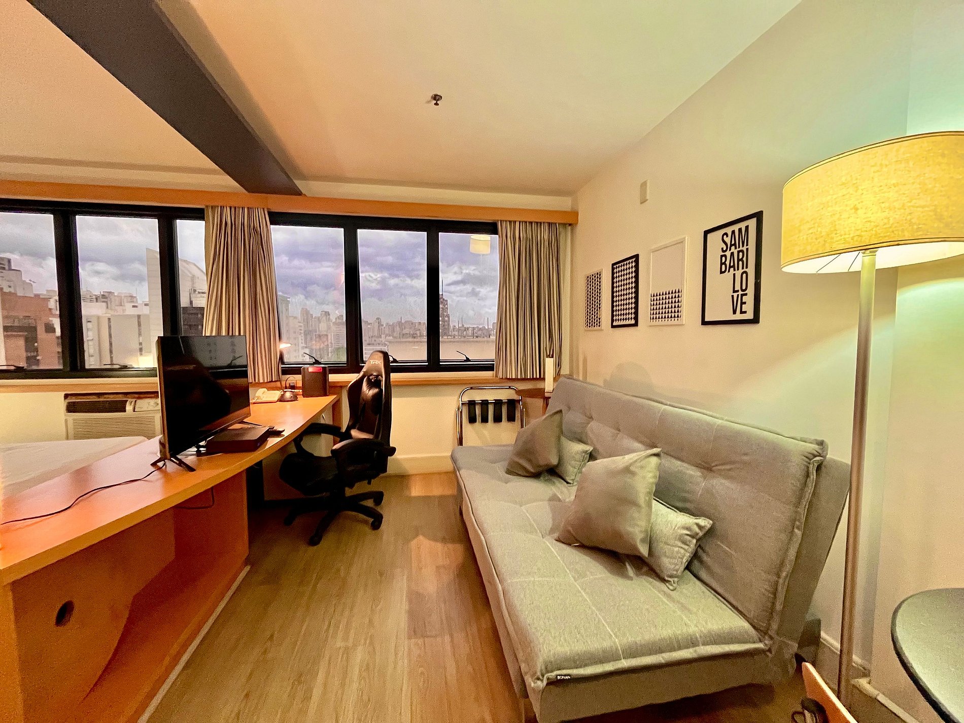 Flat com cama Queen, sofá cama de Casal