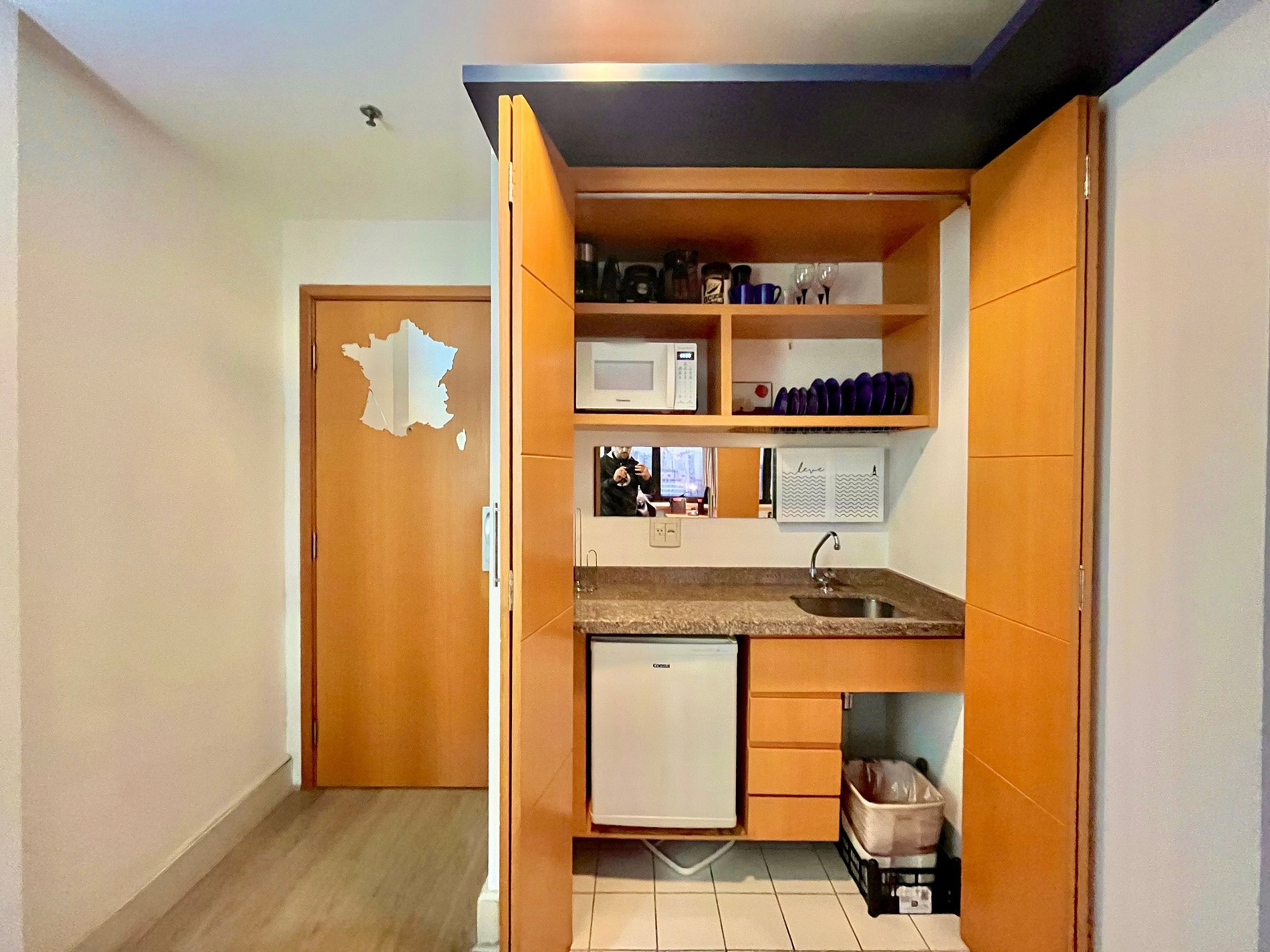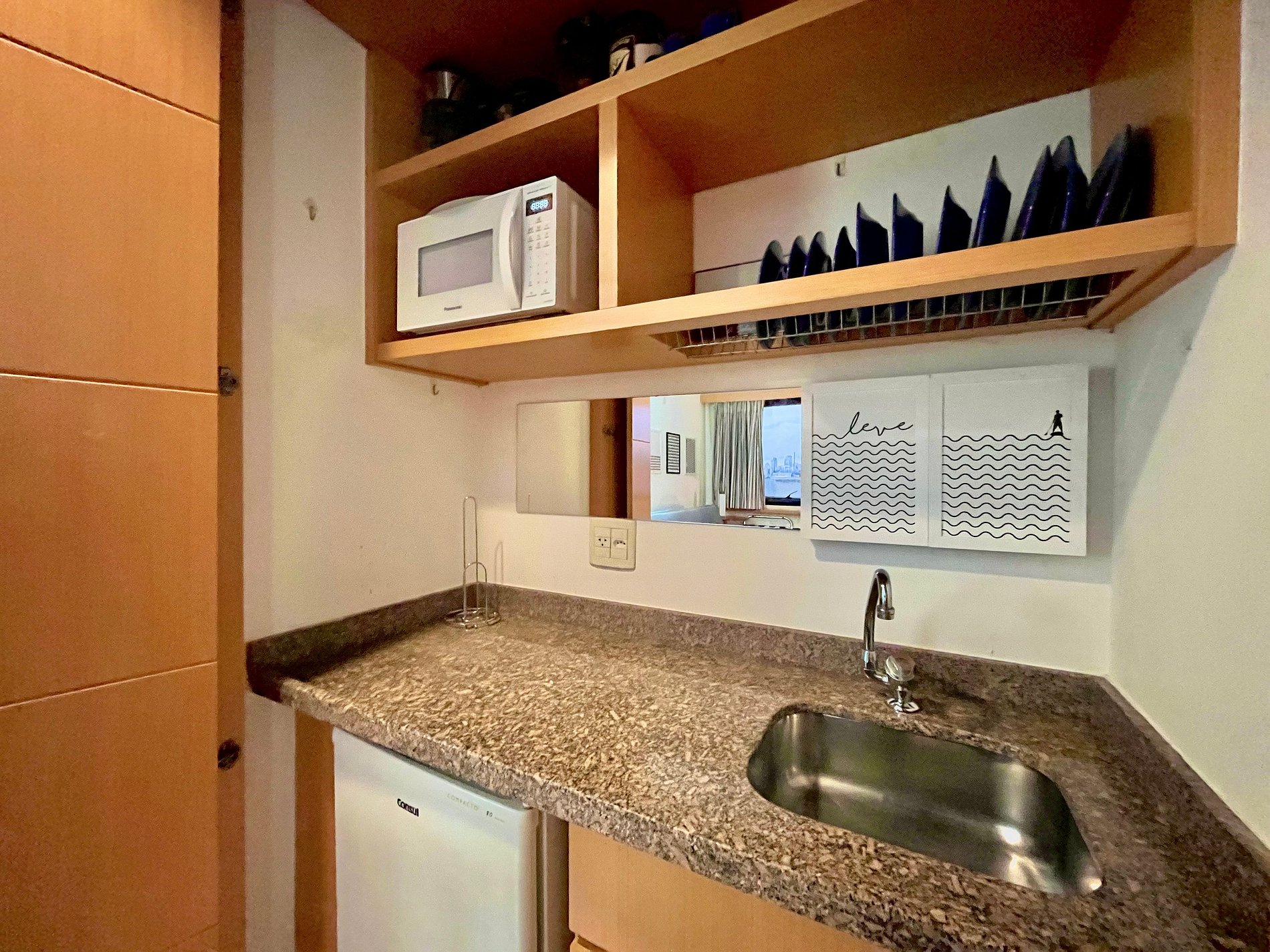 Cozinha kitnet (frigobar, microondas , cafeteira, sanduicheira e liquidificador)