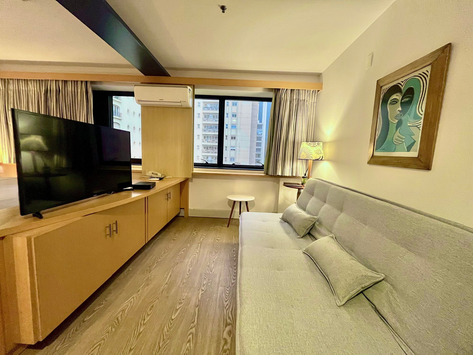 Flat com cama Queen, sofá cama de Casal