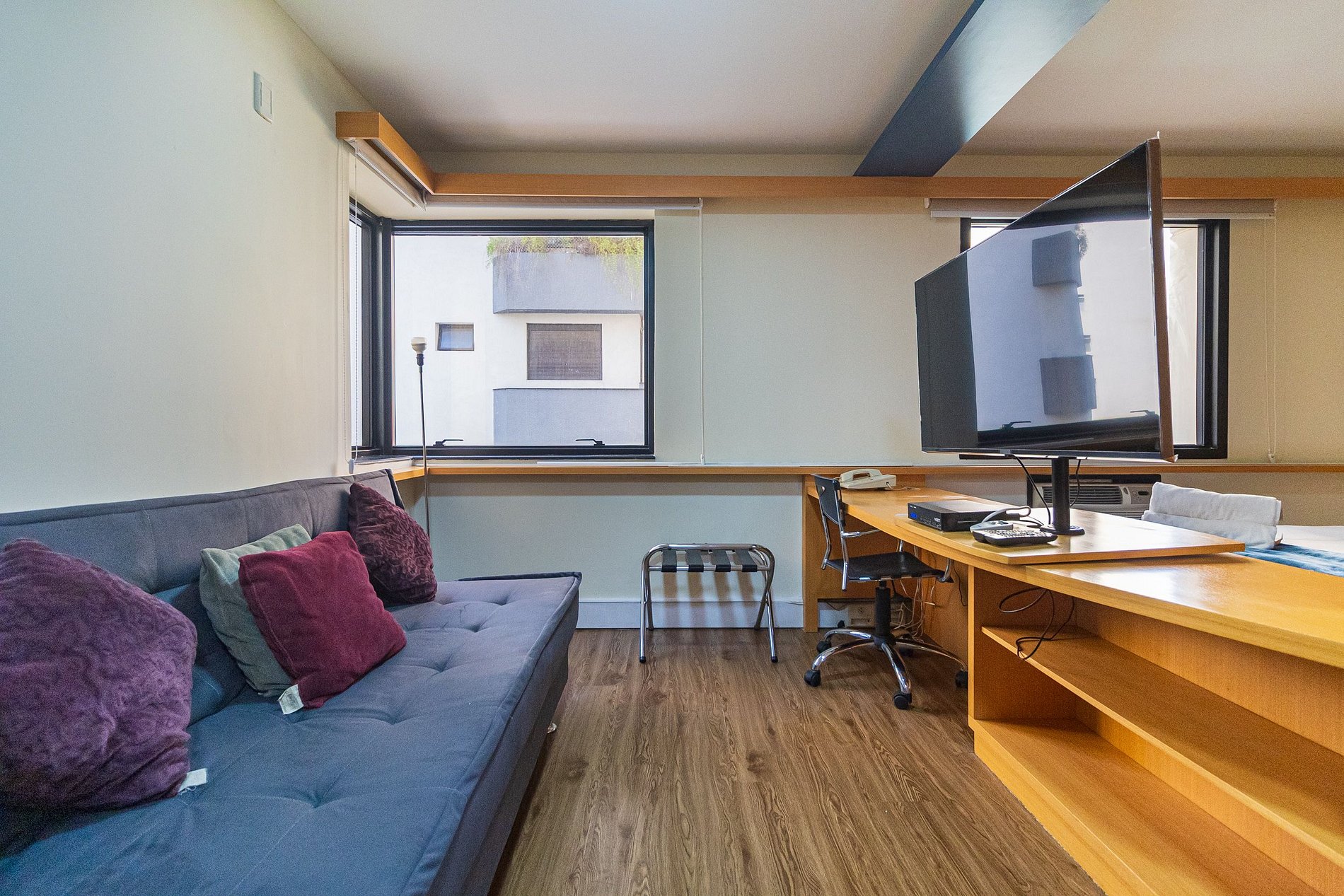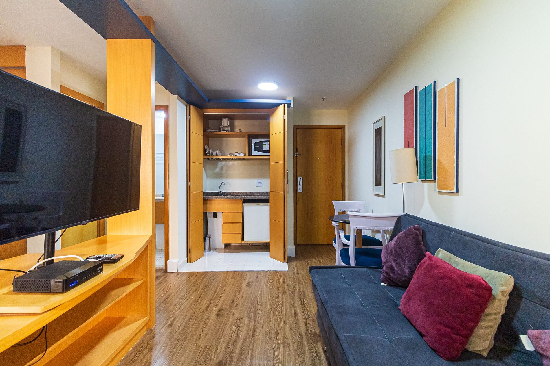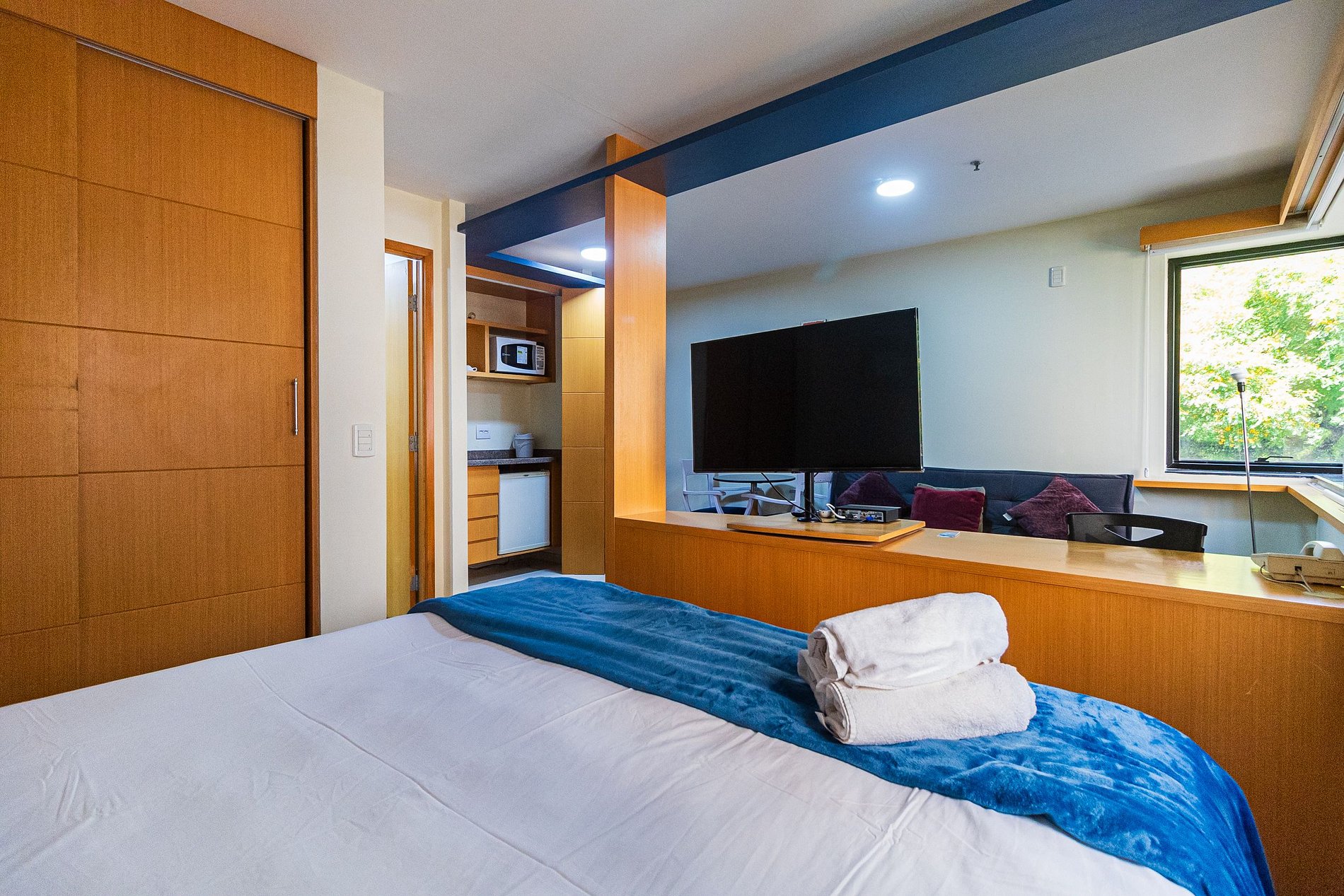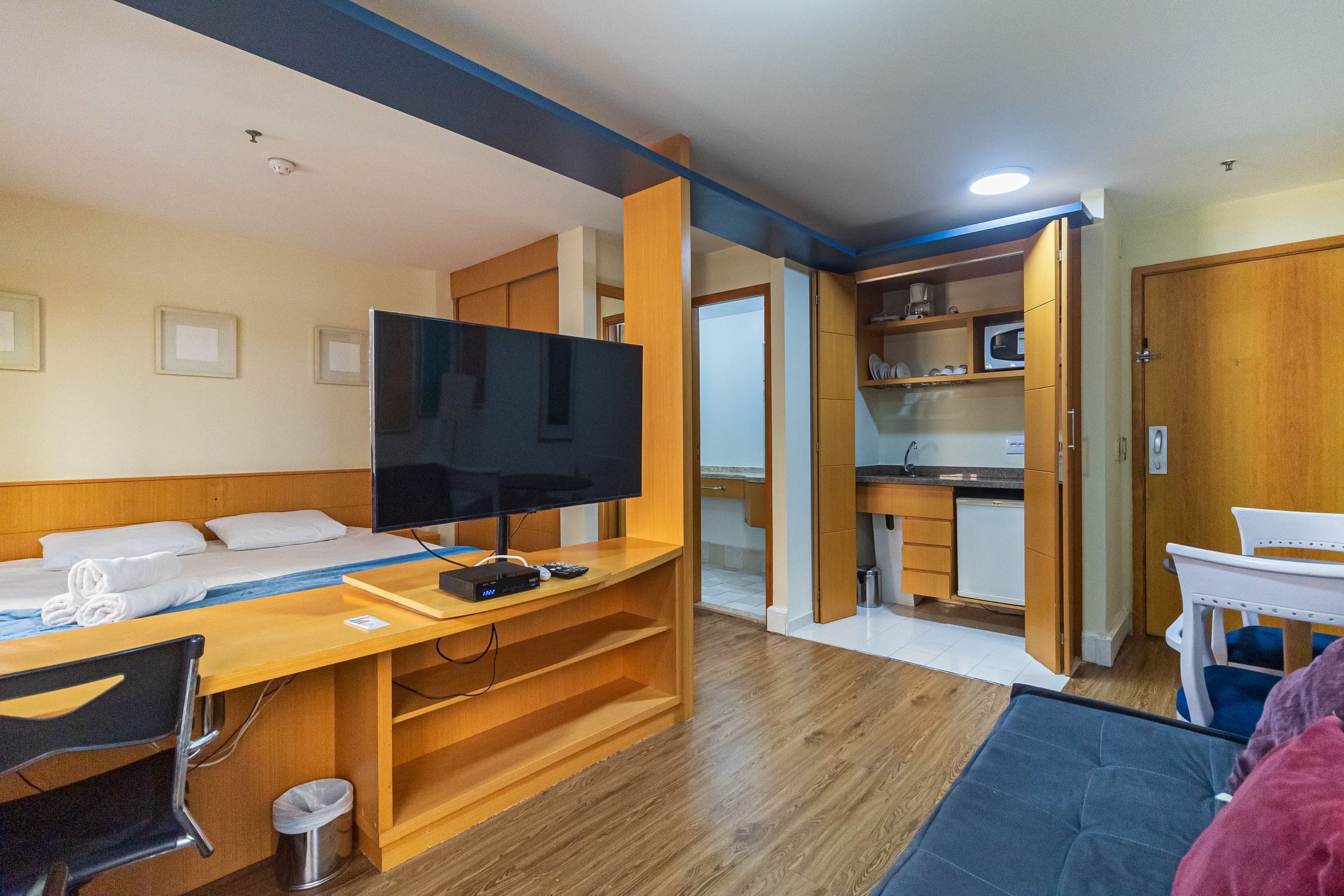 Flat com cama Queen, sofá cama de Casal