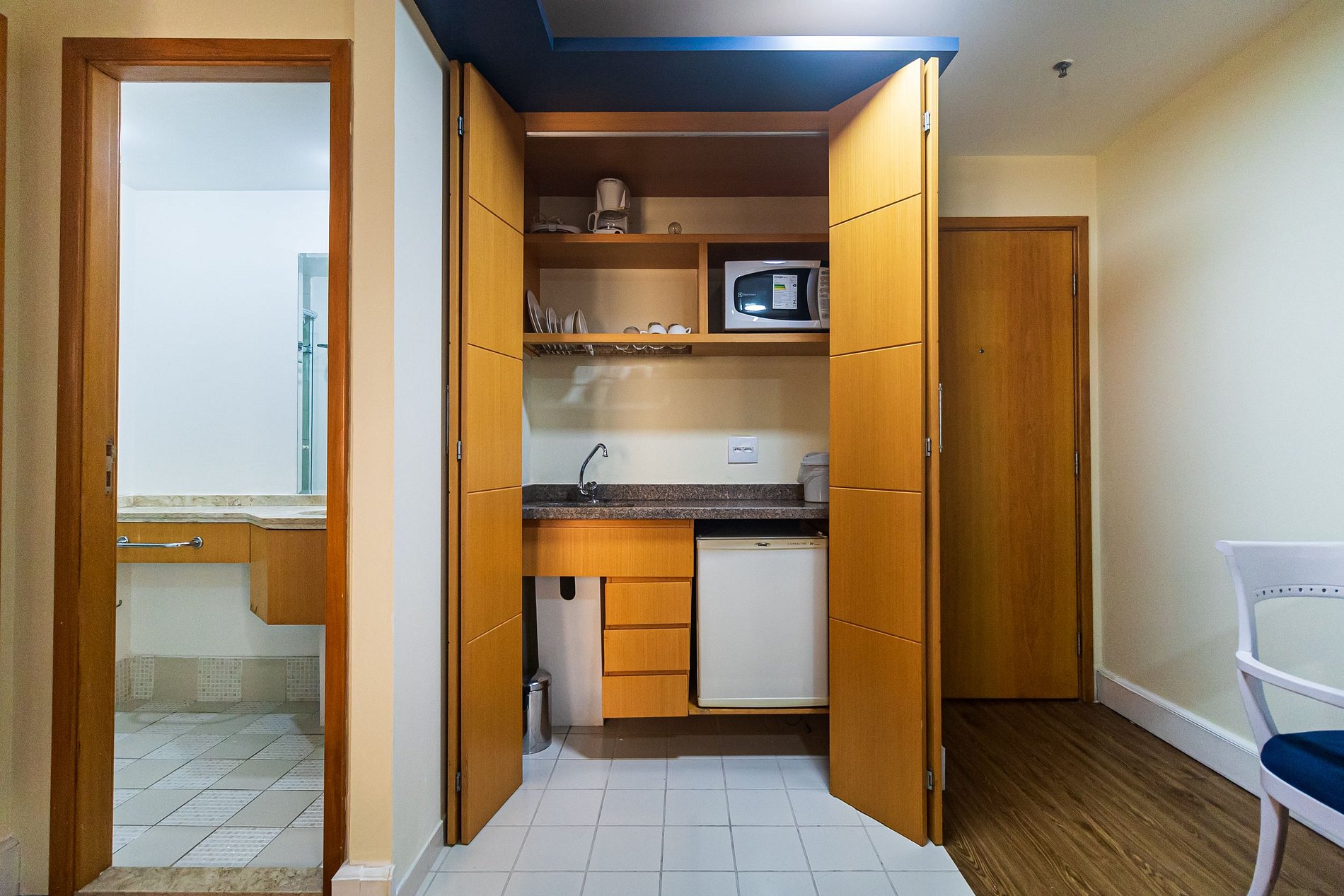 Cozinha kitnet (frigobar, microondas , cafeteira, sanduicheira e liquidificador)