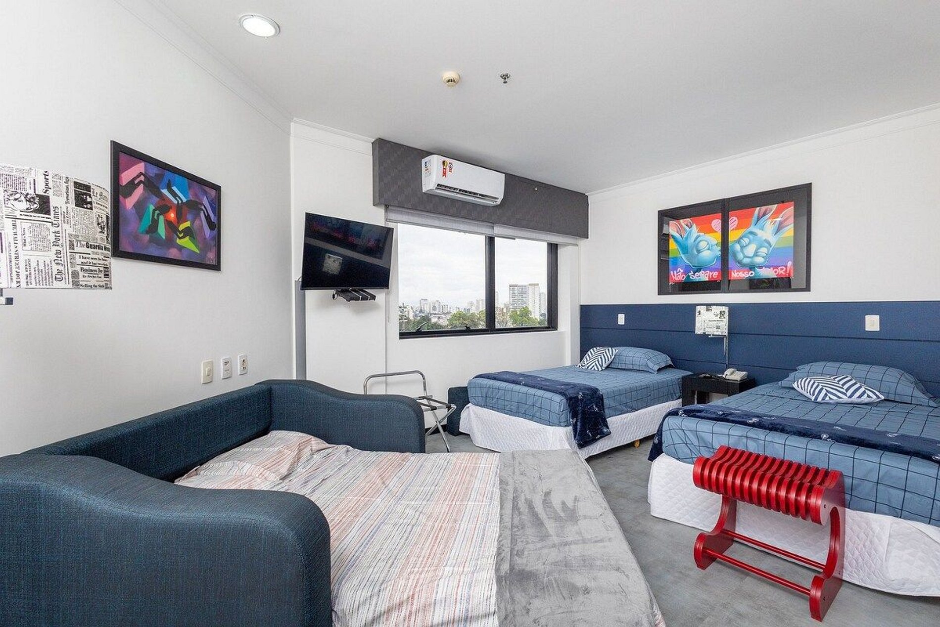 -Flat possui uma suíte com Duas camas Solteiro King , um sofá cama de Casal, ideal para acomodar até quatro hóspedes.