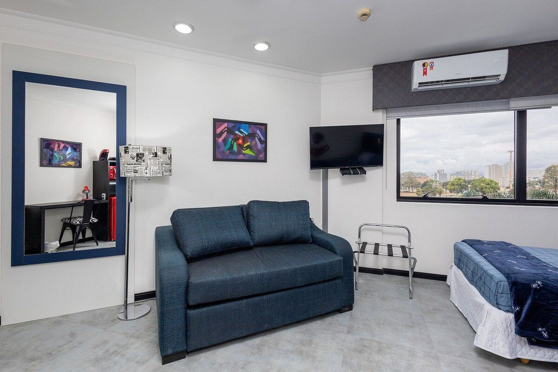Este espaço elegante é um cenário moderno para sua estadia. Fica no bairro do Campo Belo, Na frente da Entrada principal do Aeroporto de Congonhas Flat com ótima estrutura e conforto, em condomínio moderno, de fácil acesso a qualquer ponto: transportes públicos, Aeroportos, shopping, farmácia, mercados e Parques. Melhor estrutura de lazer e segurança para tranquilidade de sua estadia.
