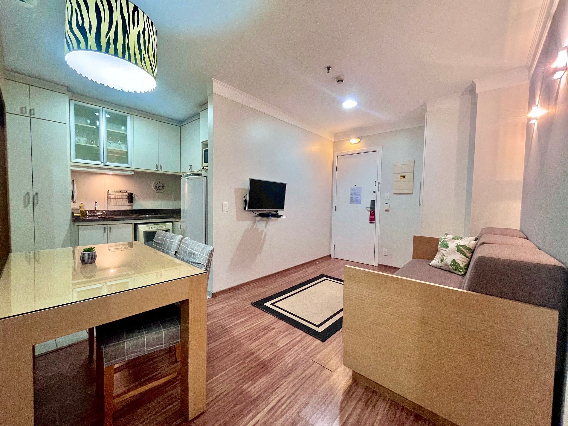 Flat com ótima estrutura e conforto, em condomínio moderno, de fácil acesso a qualquer ponto: transportes públicos, Aeroportos, shopping, farmácia, mercados e Parques. Melhor estrutura de lazer e segurança para tranquilidade de sua estadia.