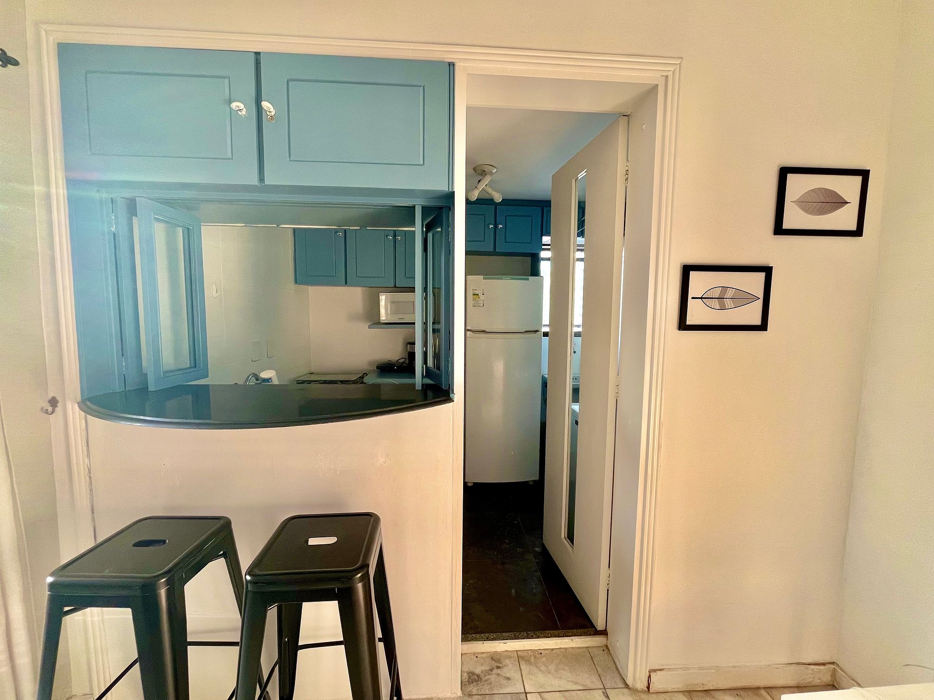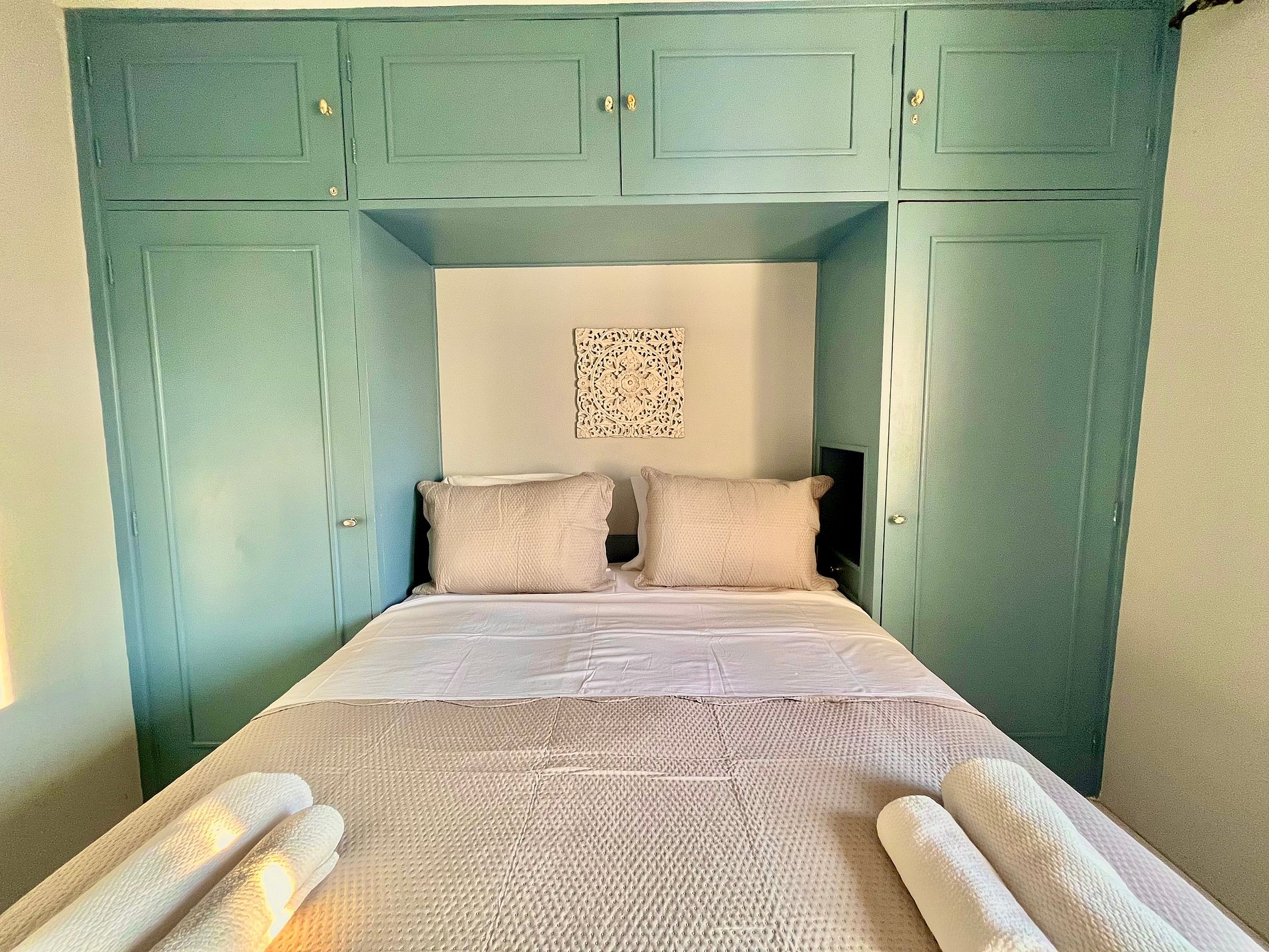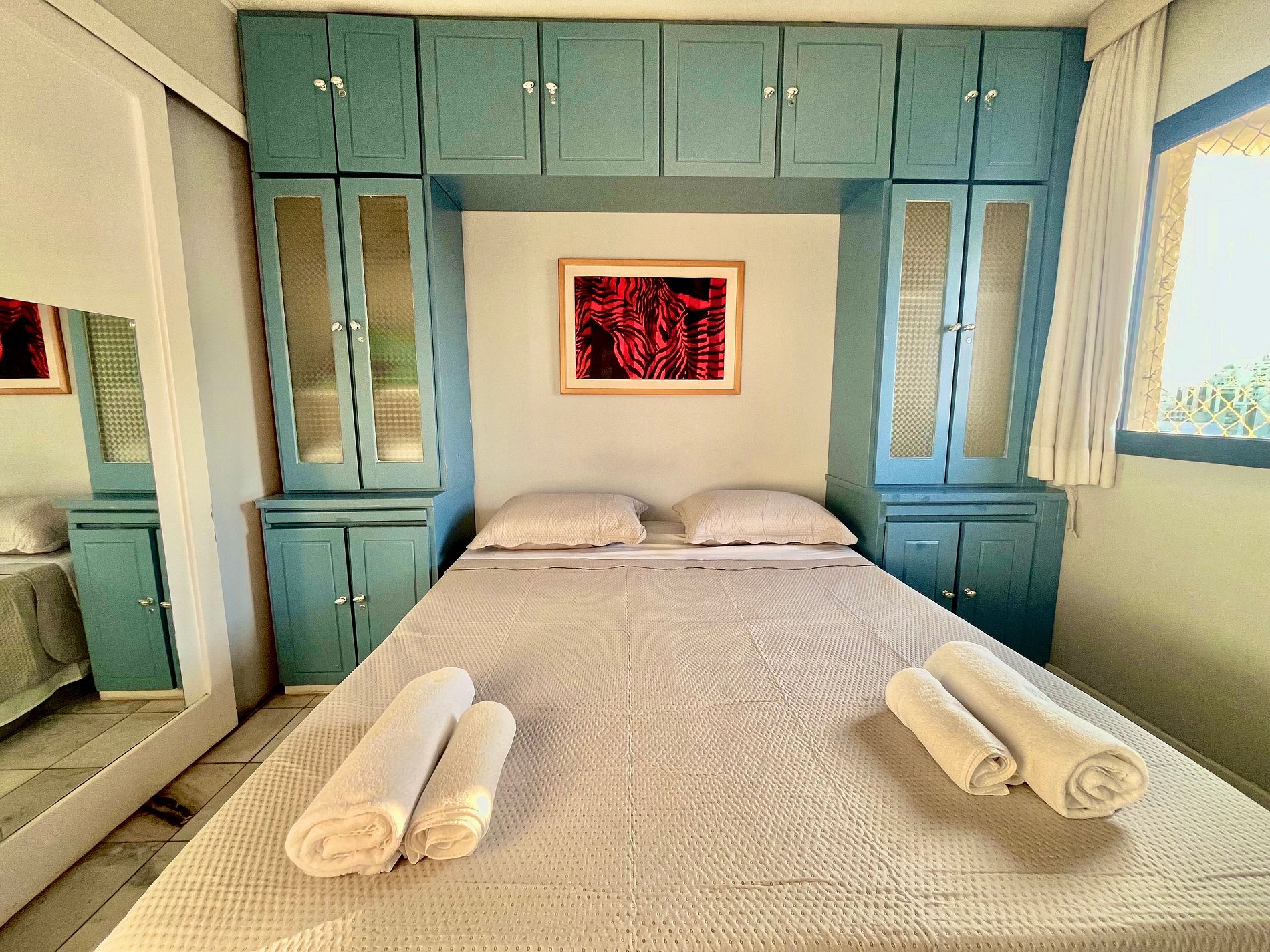 -Flat possui uma suíte com cama de casal, um sofá cama e dois colchões para colocar no chão, ideal para acomodar até cinco hóspedes.