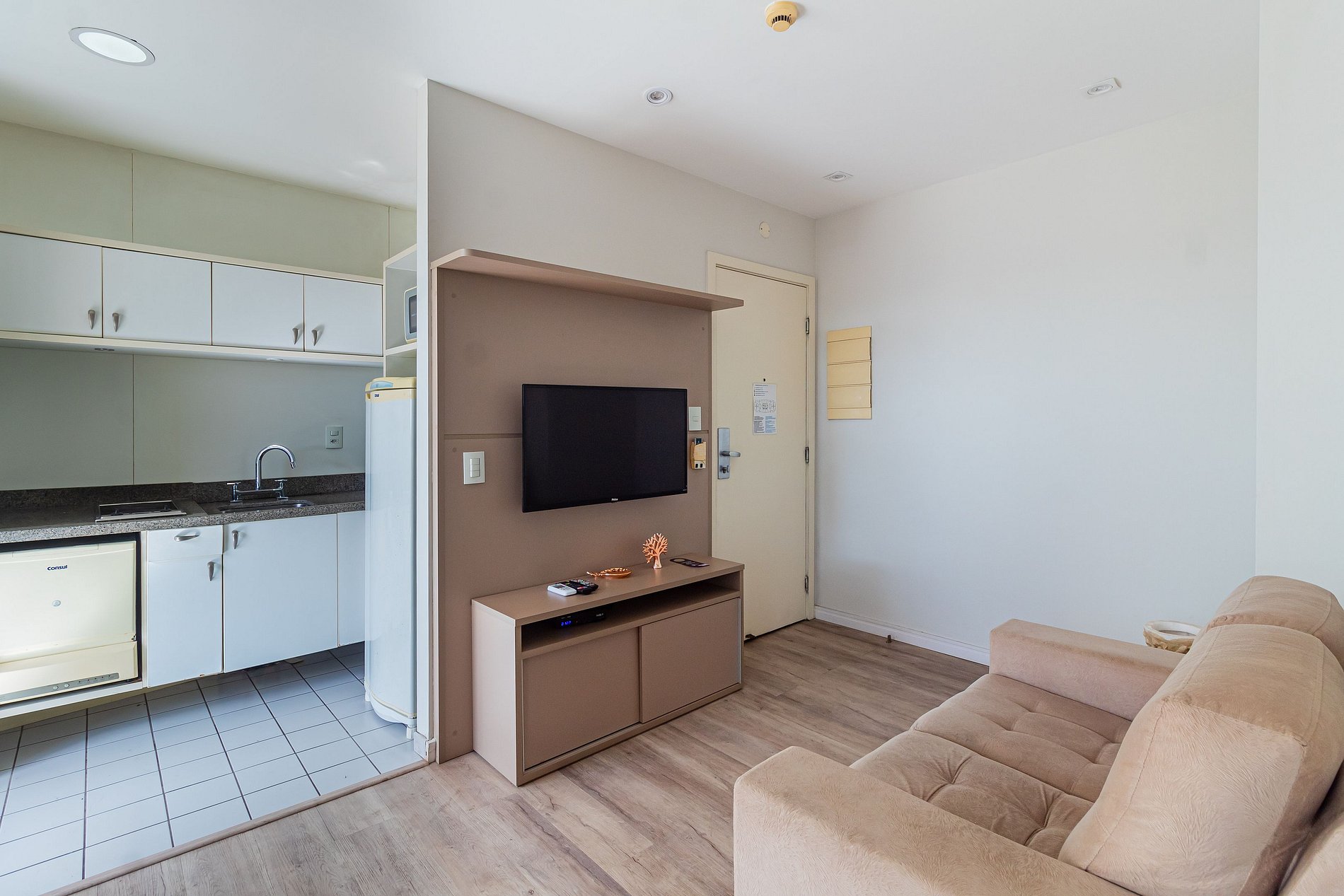 -Flat possui uma suíte com Duas camas Solteiro King , um sofá cama de Casal, ideal para acomodar até quatro hóspedes.
