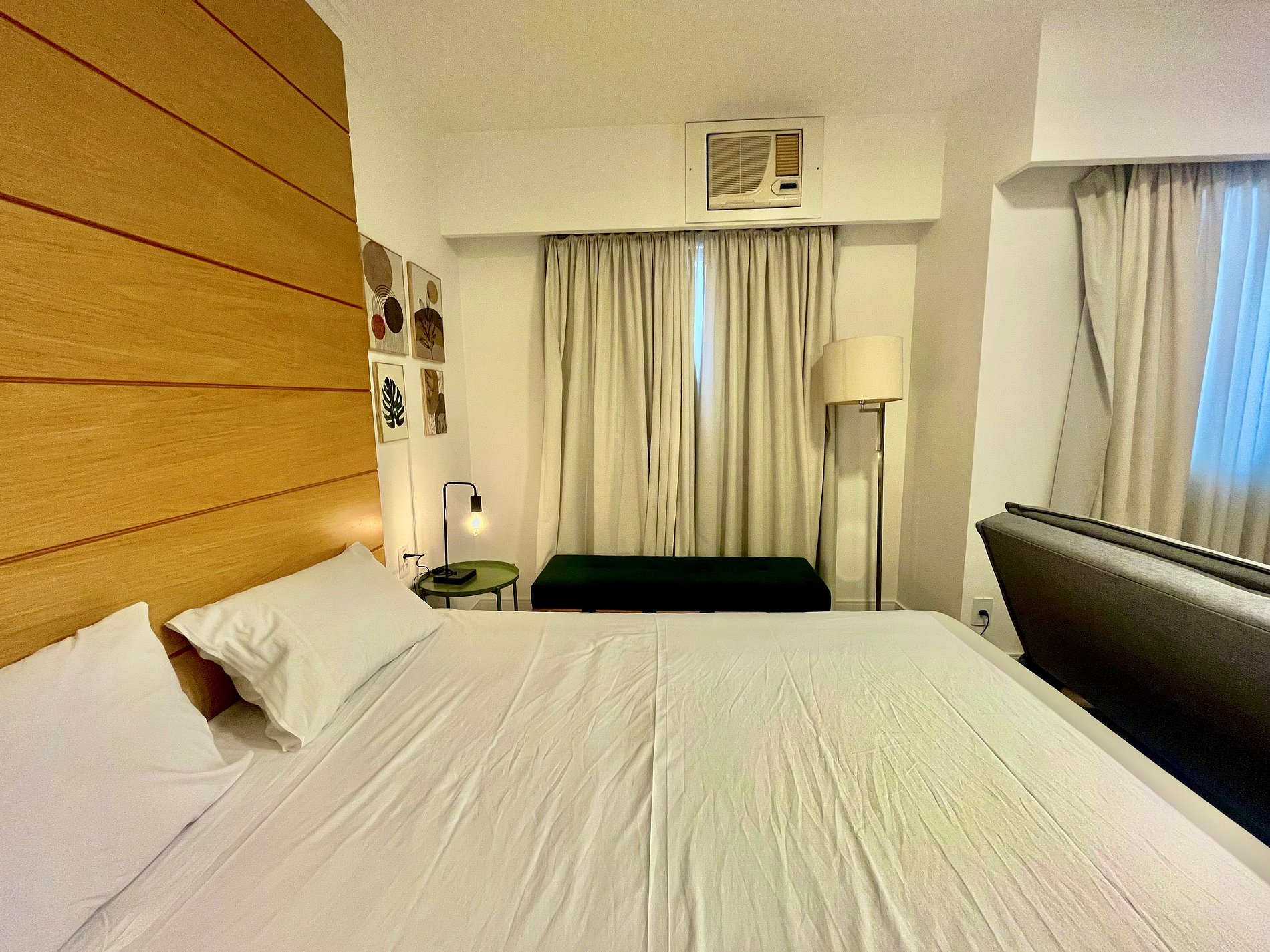 -Flat possui uma suíte com Duas camas Solteiro King , um sofá cama de Casal, ideal para acomodar até quatro hóspedes.